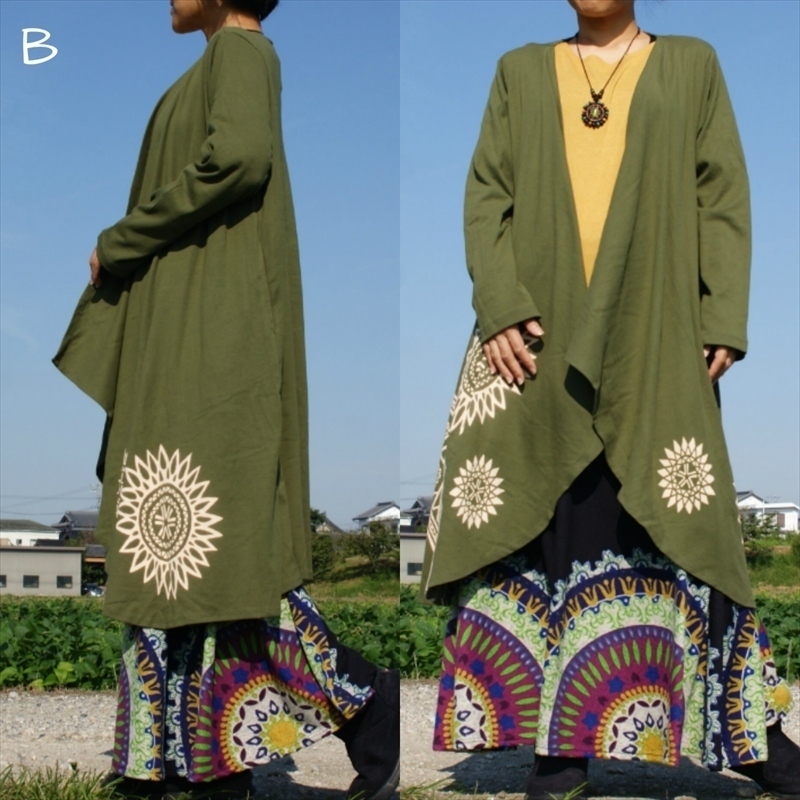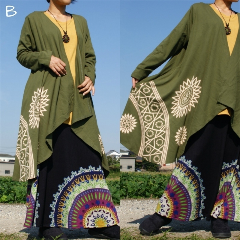 ★エスニック ロングカーデ 厚手コットン★送込新品B★アジアン カーデガン コットン素材 羽織り ユニセックス しっかり素材