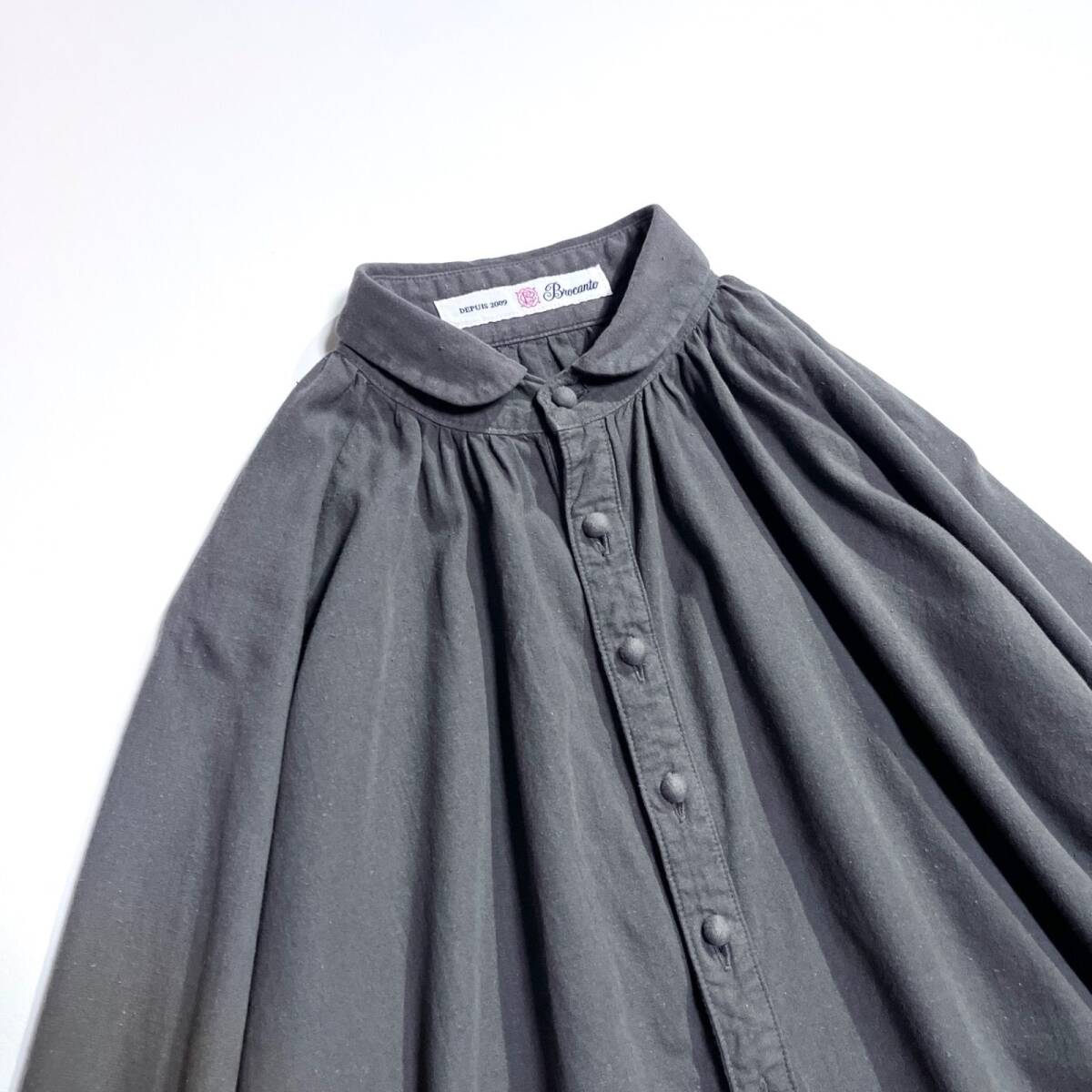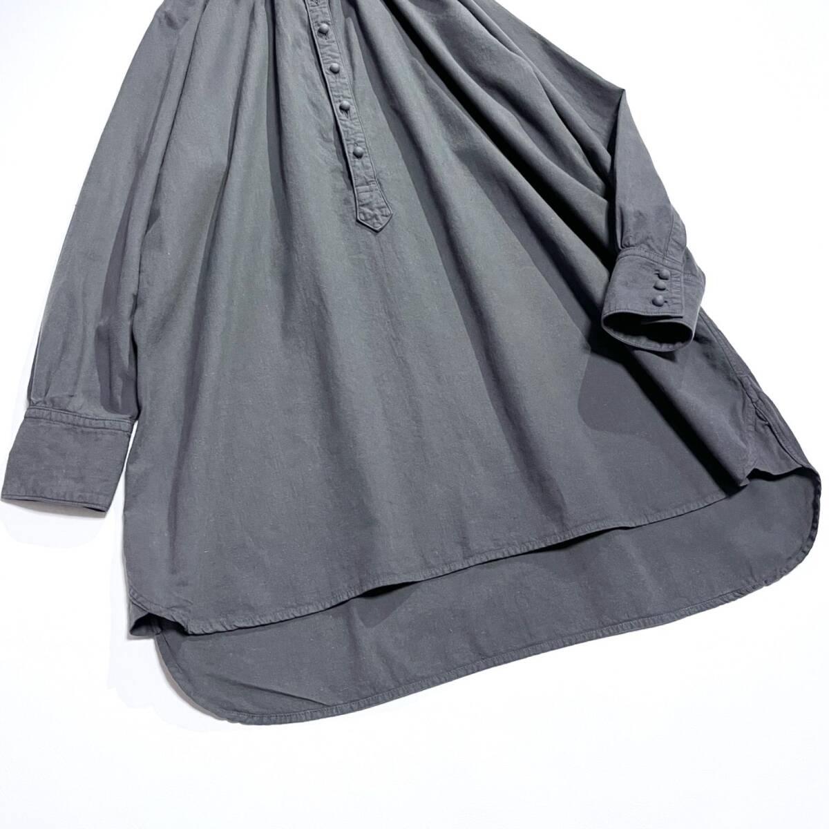 くるみボタンオーバーシルエットシャツ カラーシャツ Aラインシャツ ギャザーシャツ ハーフボタン 丸襟 日本製 made in japan