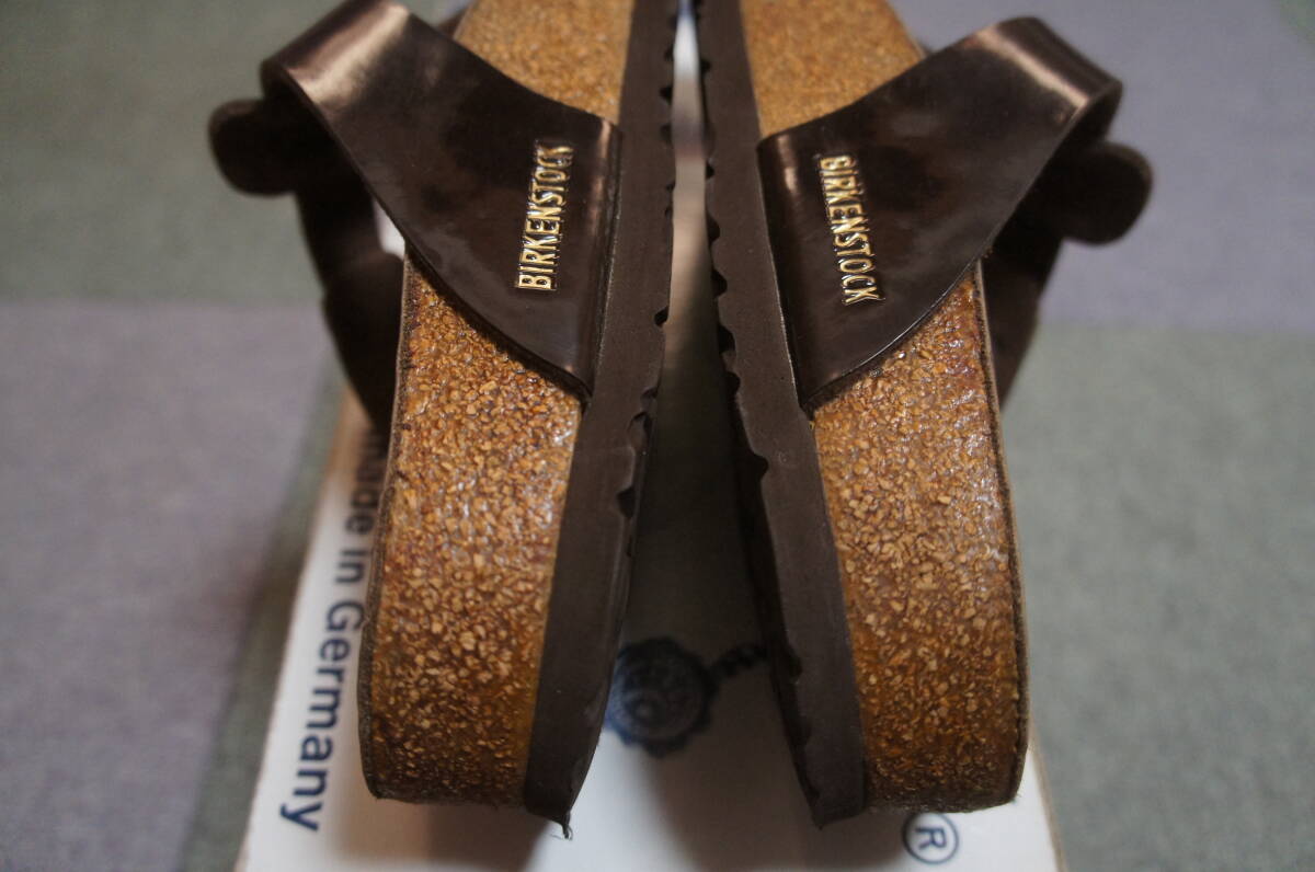 美品  送600円 限定 激レア ビルケンシュトック メディーナ パテント  エクスクイジット ダークブラウン  クリーニング済み  38 24.5cm ユーズドで細かな擦れや汚れはありますが、目立つダメージや汚れはありません。ソールの減りは少なめでまだまだ使用して頂ける状態だと思います。元箱は付属しません。