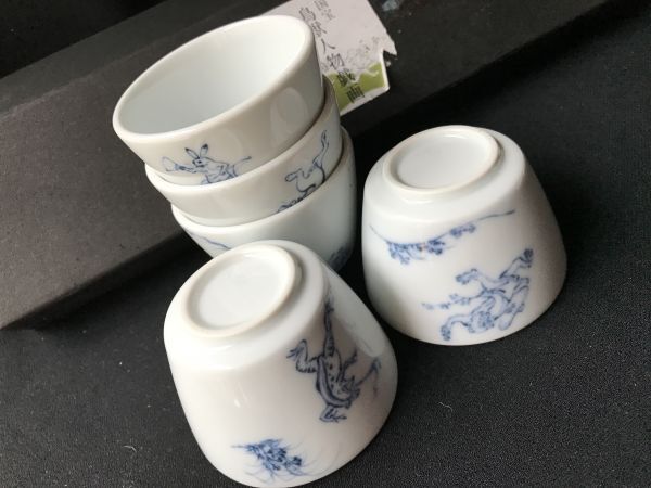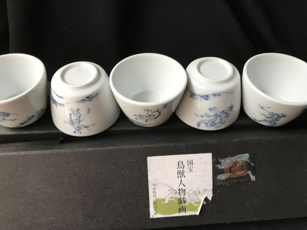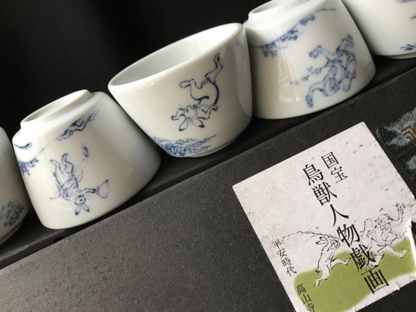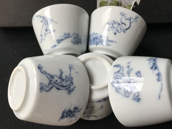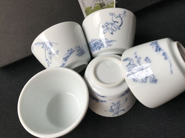 有田焼 松本弥左ェ門窯 鳥獣人物戯画 5客