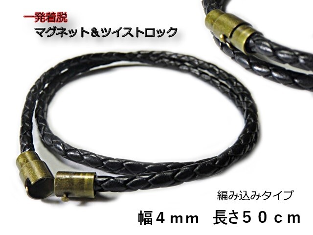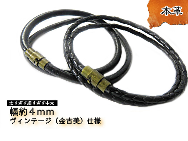 革ヒモ幅4mm(編み込みタイプは手編みの為、差異有り3.7mm~4mm)×長さ50cm