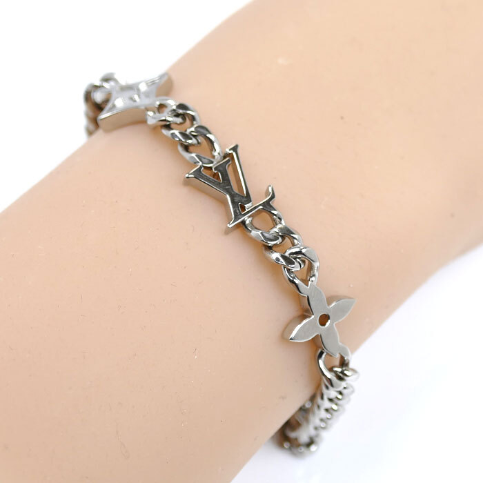 | サイズ | 長さ:約~23.5cm フラワーモチーフ幅:約12mm チェーン幅:約5.2mm 内径:約16.5~22cm |