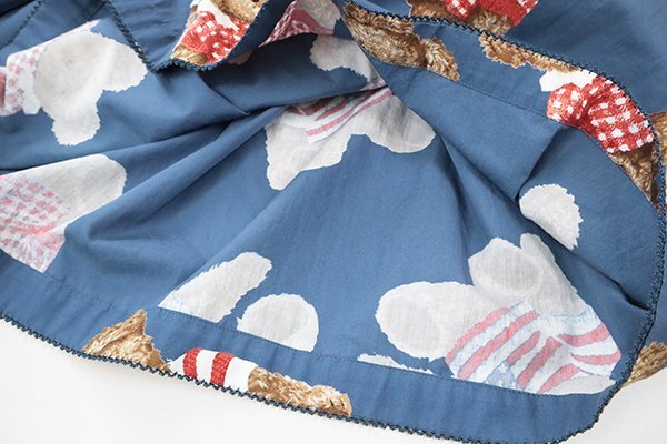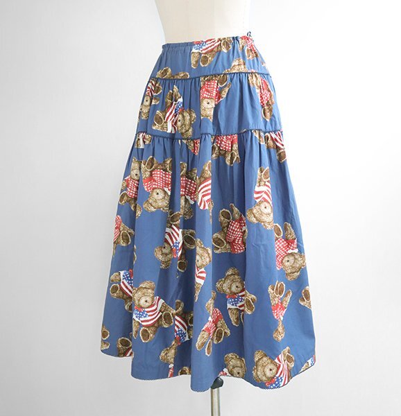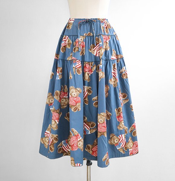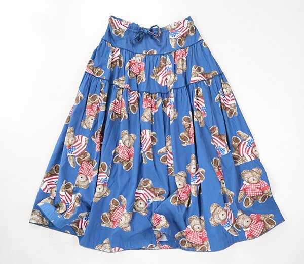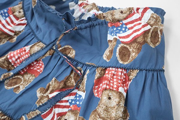 WONDERFUL WORLD ◆ 綿ブロード 星条旗くま ティアード ピコフリル スカート ブルー ワンダフルワールド カネコイサオ ◆G091