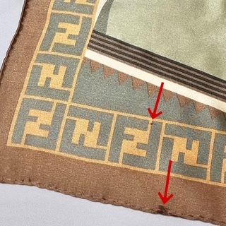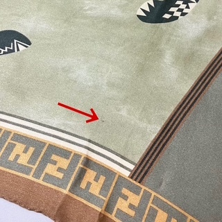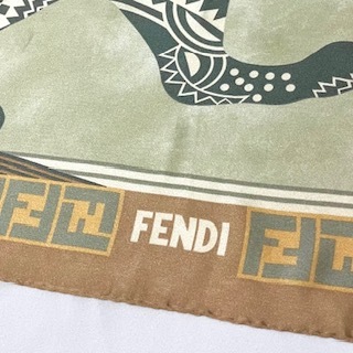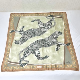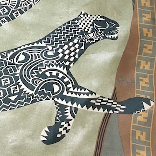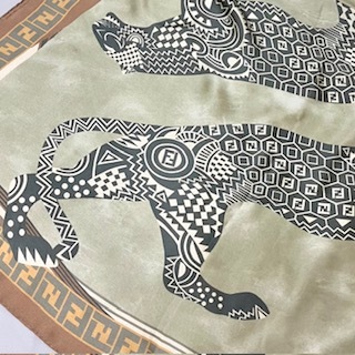 スカーフのふちはフェンディ定番のズッカ柄、中央にヒョウとズッカ柄が施されています。