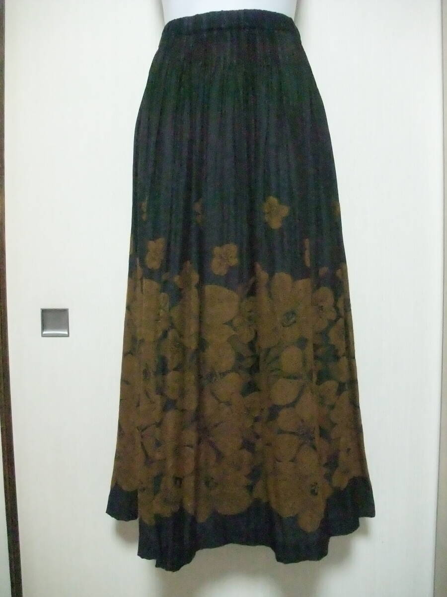 4298・シズカコムロ/ロングスカート/プリーツ/刺繍/ウエストゴム/茶系/40