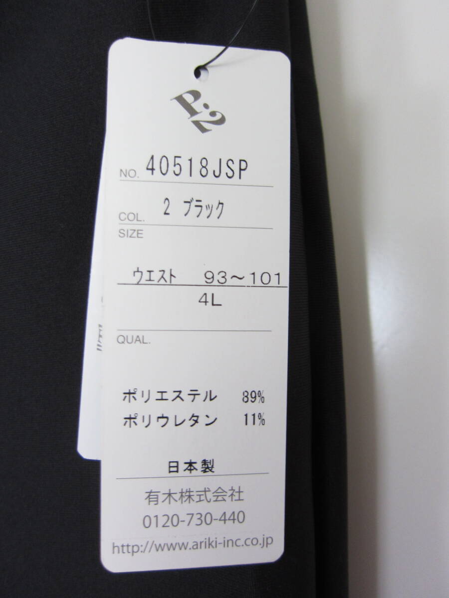 ★送料無料 707 新品【4L】 P2 ピーツー ブラック ストレッチ パンツ 日本製 40518JSP 有木株式会社 テイジン 大きいサイズ