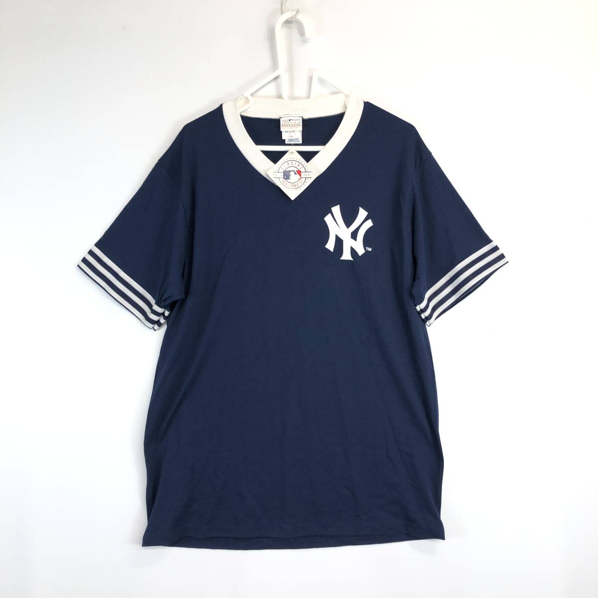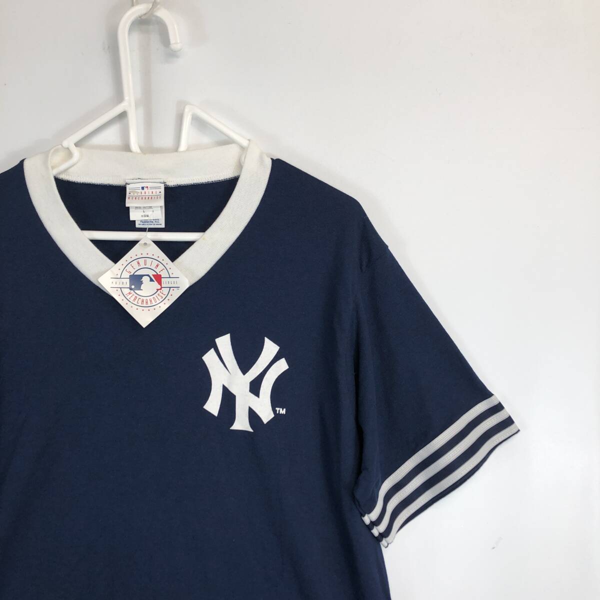 90s USA製 デッドストック MLB ニューヨークヤンキース 半袖Tシャツ ダークネイビー SOFFEボディ Lサイズ
