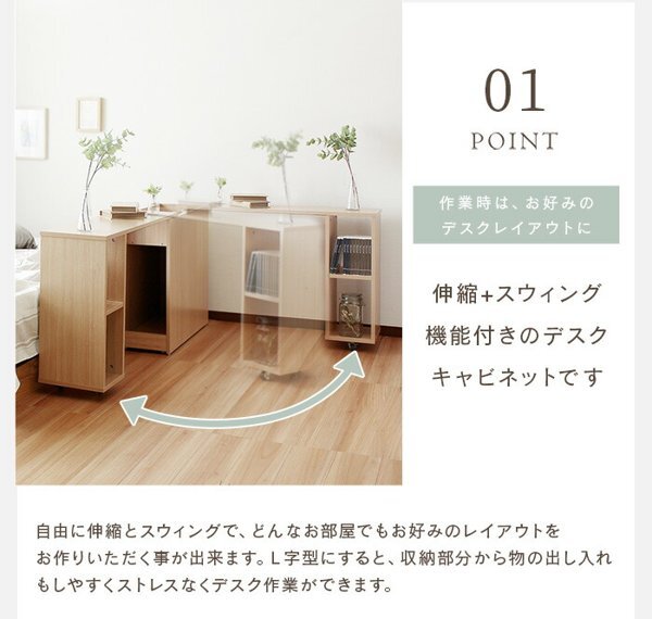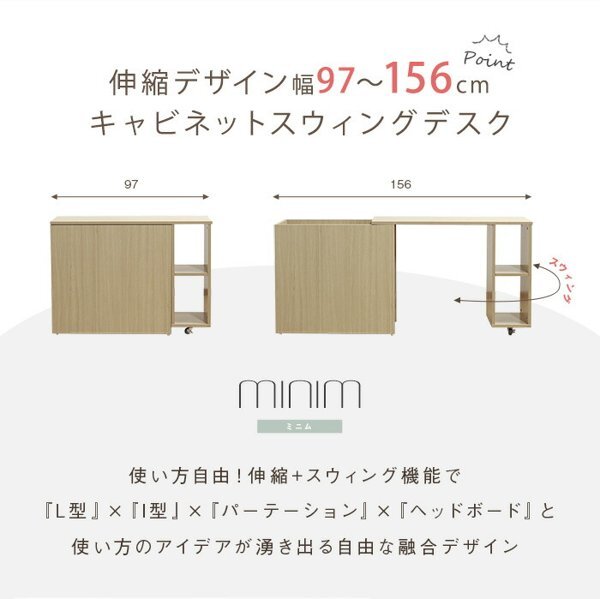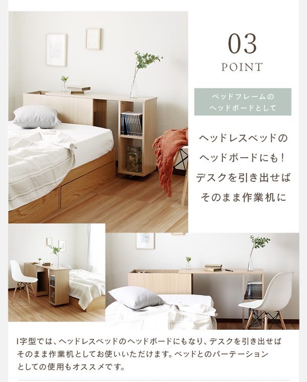 ※現在ご覧の商品ページはナチュラルのご購入ページとなります。 ヤフオクの仕様上単一ページに複数バリエーションを掲載することができませんので、他バリエーションが希望の場合は別ページでご購入お願い致します。 ■使い方のアイデアが湧き出る自由な融合デザイン /ミニム【minim】 【ベッドフレームのヘッドボードとして】 I字型では、ヘッドレスベッドのヘッドボードにもなり、デスクを引き出せば そのまま作業机としてお使いいただけます。 ベッドとのパーテーション としての使用もオススメです。 【お好みのレイアウトで】 自由に伸縮とスウィングで、どんなお部屋でもお好みのレイアウトを お作りいただく事が出来ます。 L字型にすると、収納部分から物の出し入れ もしやすくストレスなくデスク作業ができます。 アイデア次第で自由にお使い頂けるデスクで お部屋レイアウトをお楽しみください。 配達業者を指定いただくことはできません。 北海道/沖縄/離島のお届けに別途中継料金が発生します。 ※別途送料が発生する場合は後ほどご連絡させていただきます。 当店は正規店です。 タイミングによっては在庫切れの場合があります。