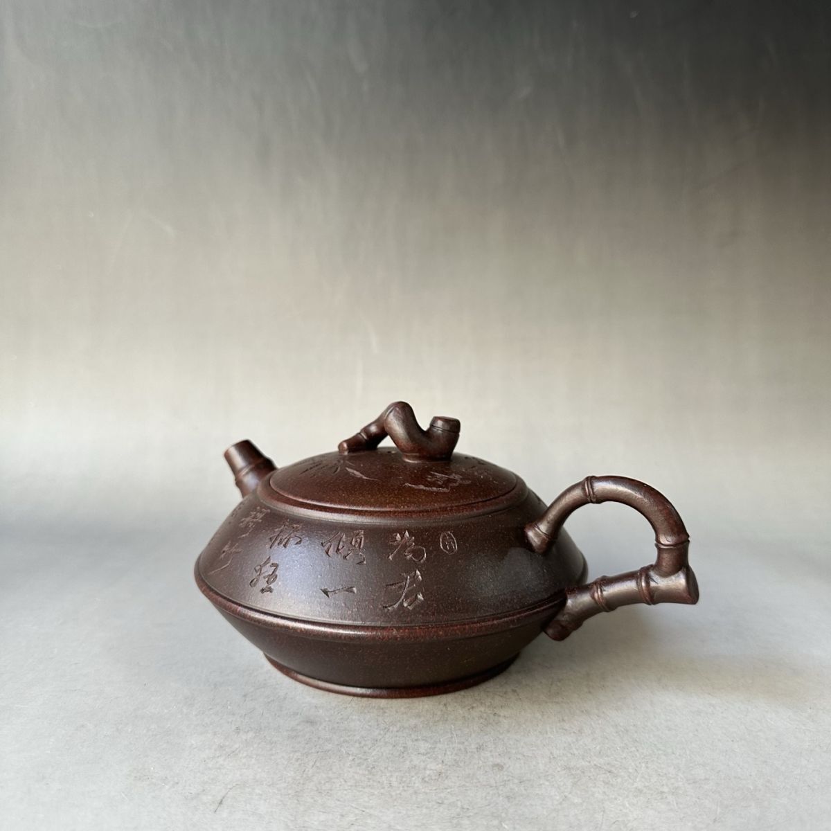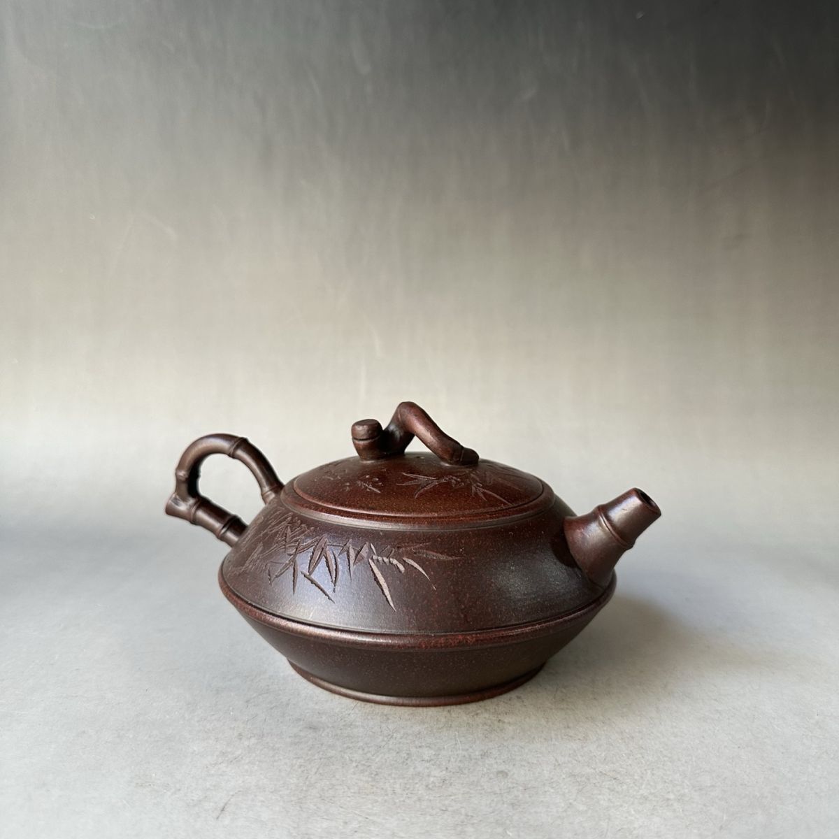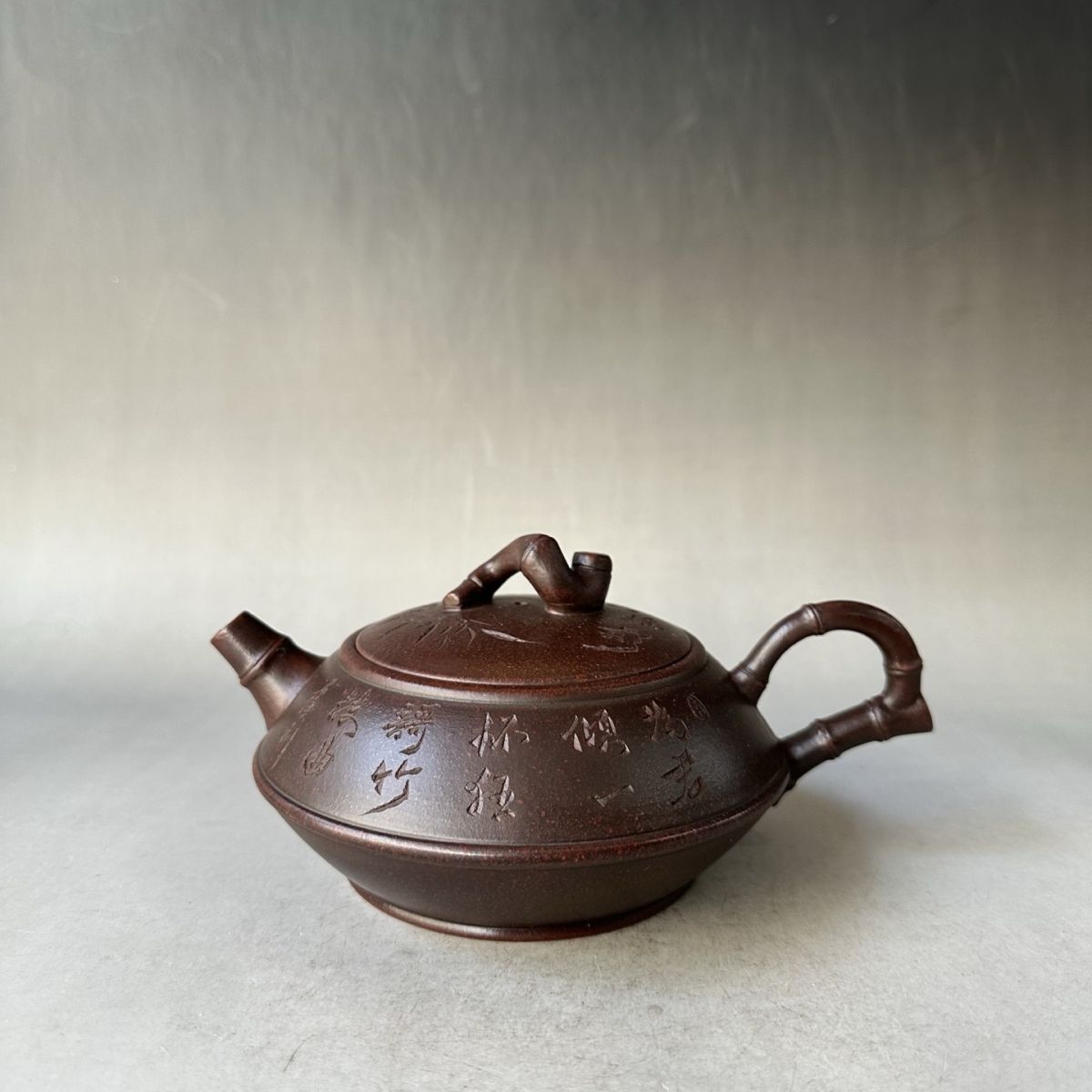 永し 旧家蔵出 顧景舟款 品名【懷若竹壺】朱泥 段泥 煎茶道具 急須 単孔口 唐物 紫砂壺 紫砂壷 茶壷 茶壷 極細工 古美術品 中国唐物 A11