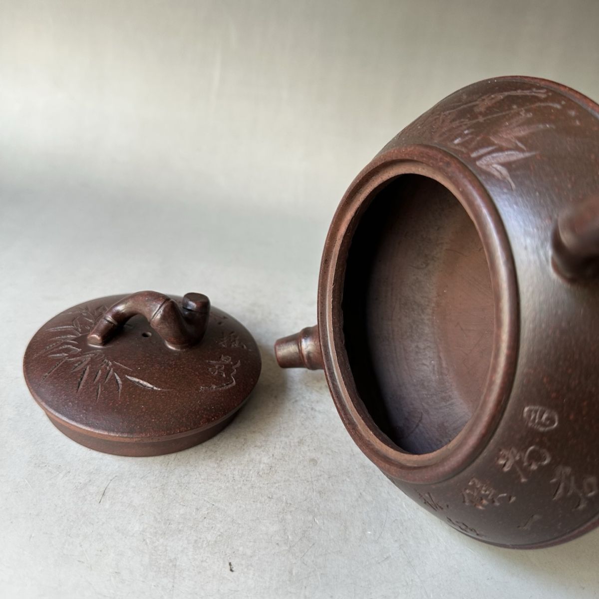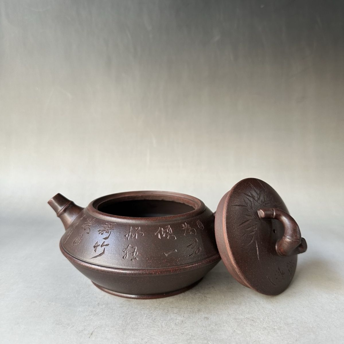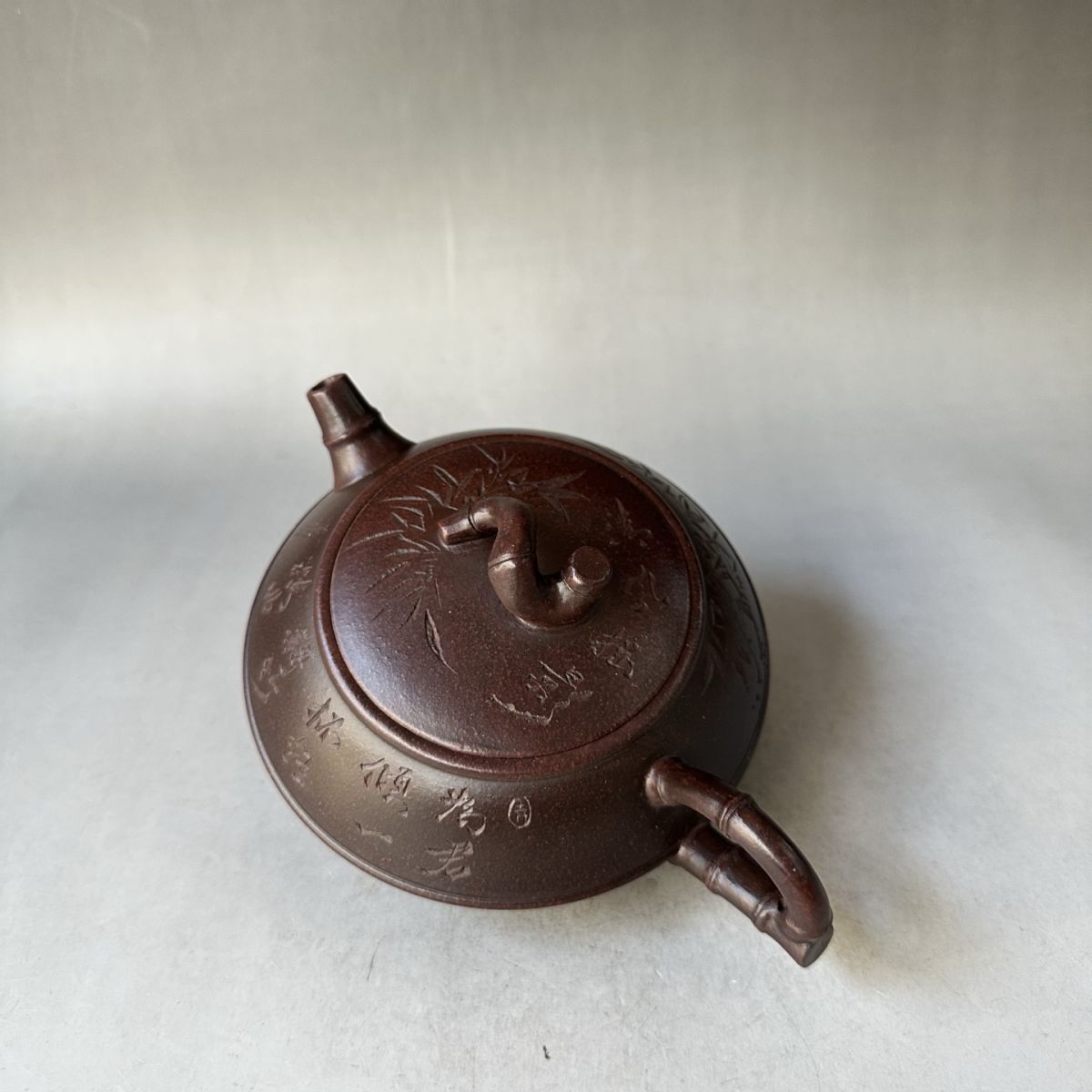 永し 旧家蔵出 顧景舟款 品名【懷若竹壺】朱泥 段泥 煎茶道具 急須 単孔口 唐物 紫砂壺 紫砂壷 茶壷 茶壷 極細工 古美術品 中国唐物 A11