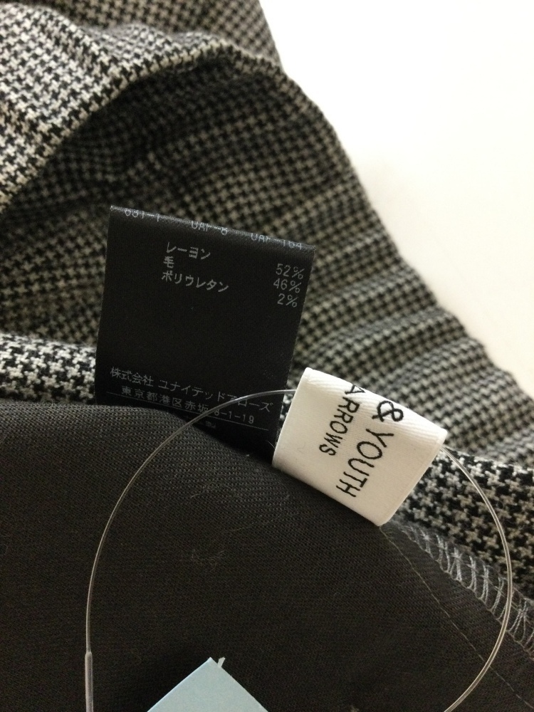 このお品は春秋向けです。 レーヨン52%、毛46%、ポリウレタン2% ウエスト幅は最大36cmほど |