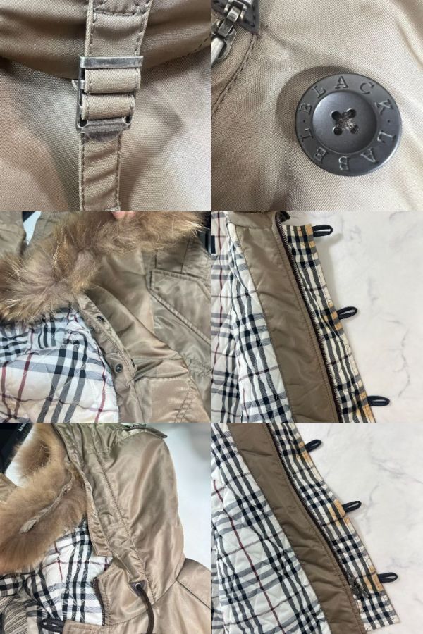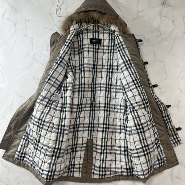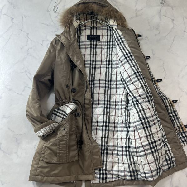 バーバリーブラックレーベル キルティングロングコート ダッフル フード リアルファー 2way ノバチェック ホースロゴ