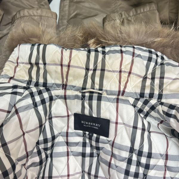 バーバリーブラックレーベル キルティングロングコート ダッフル フード リアルファー2way ノバチェック ホースロゴ メンズ BURBERRY B1425