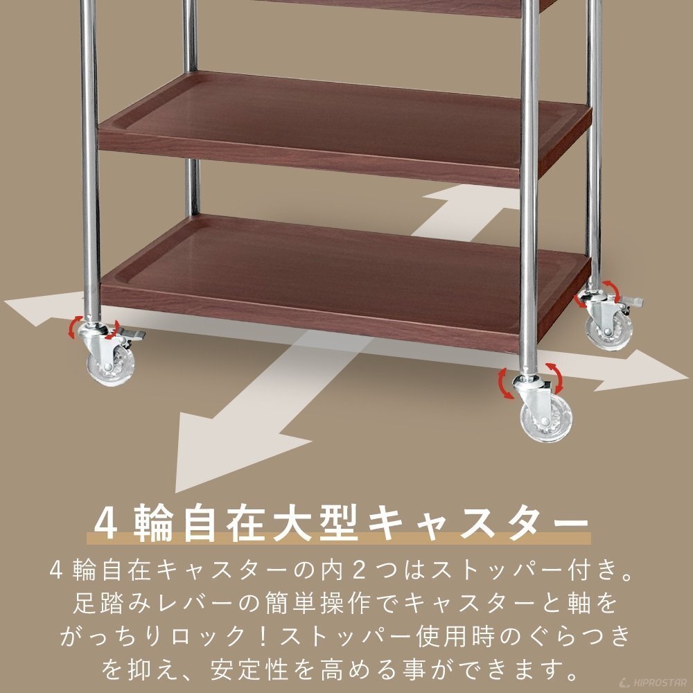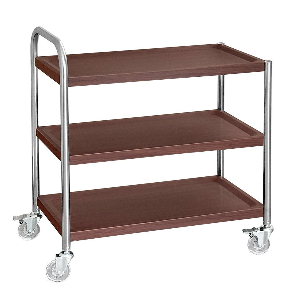 | 即納 木目調ステンレスサービスワゴン ダークブラウン 3段 シングルハンドル M |