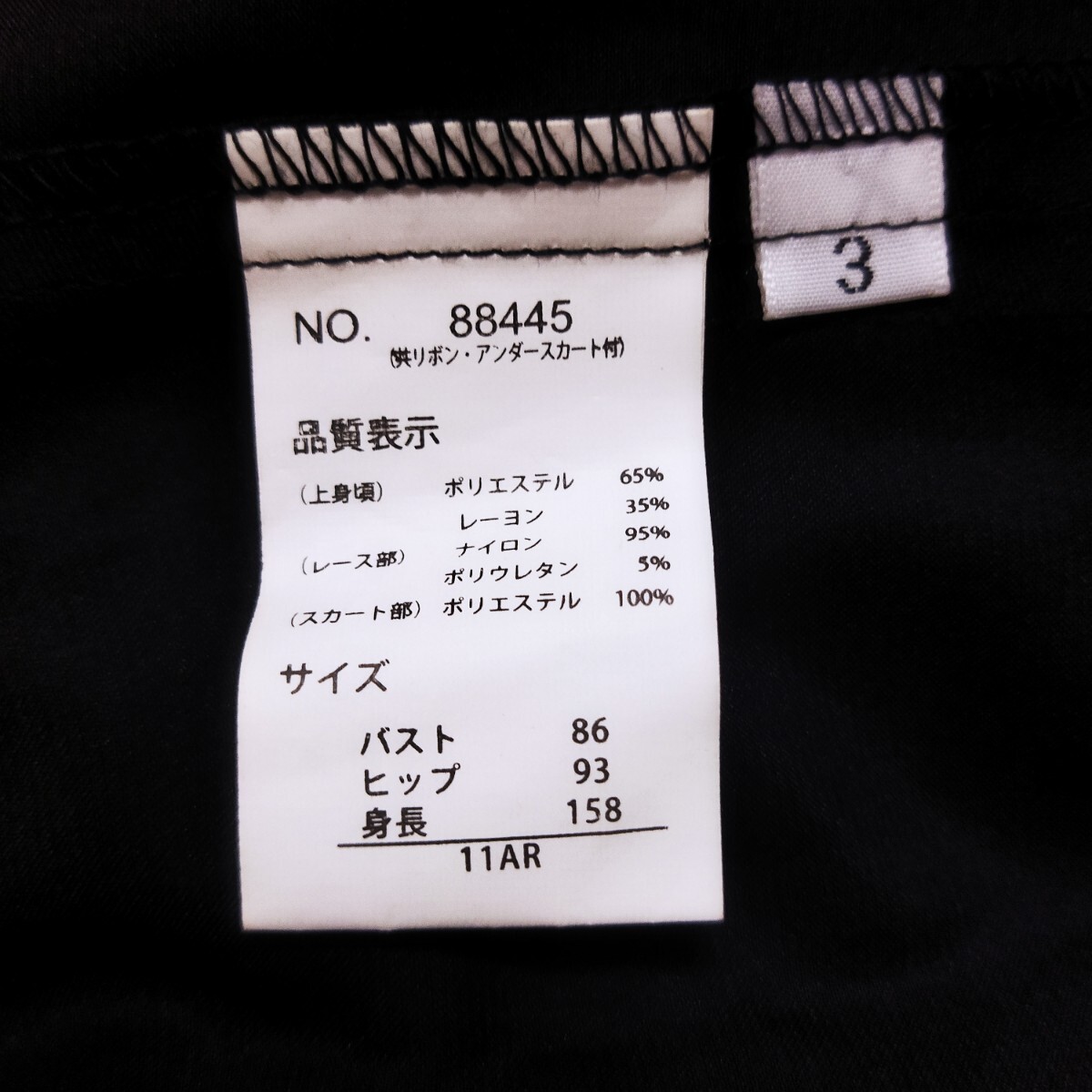 黒 ワンピース 半袖 11AR Lサイズ ウエストリボン,アンダースカート付き/stayle Recipe(スタイルレシピ) *美品