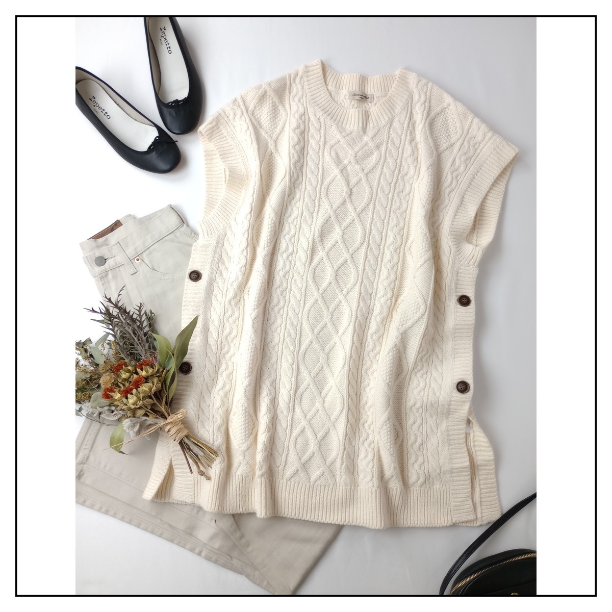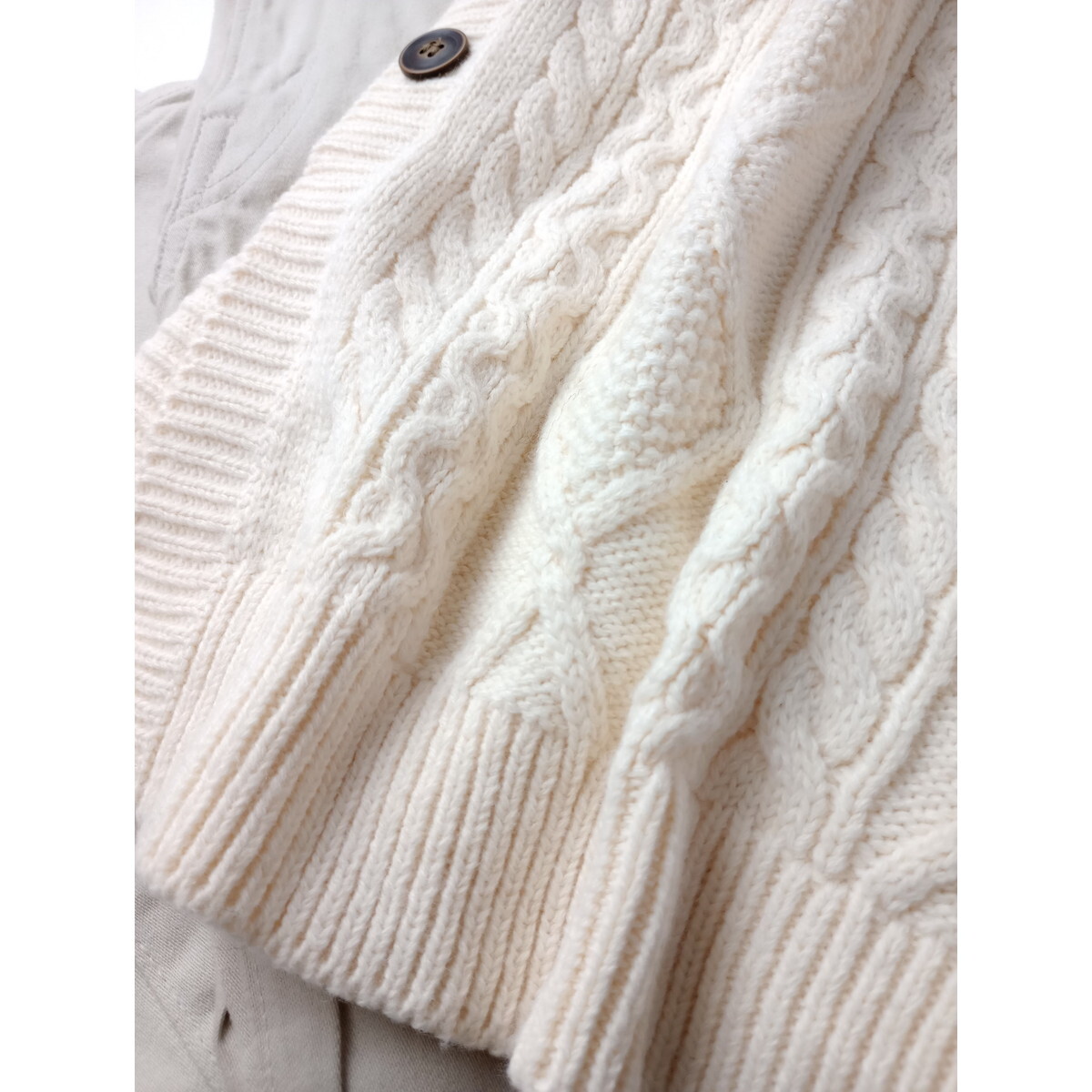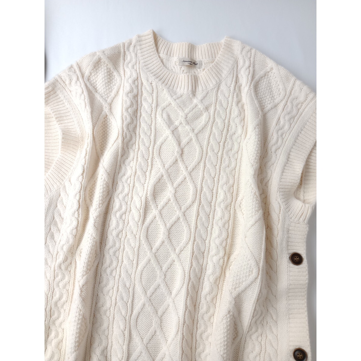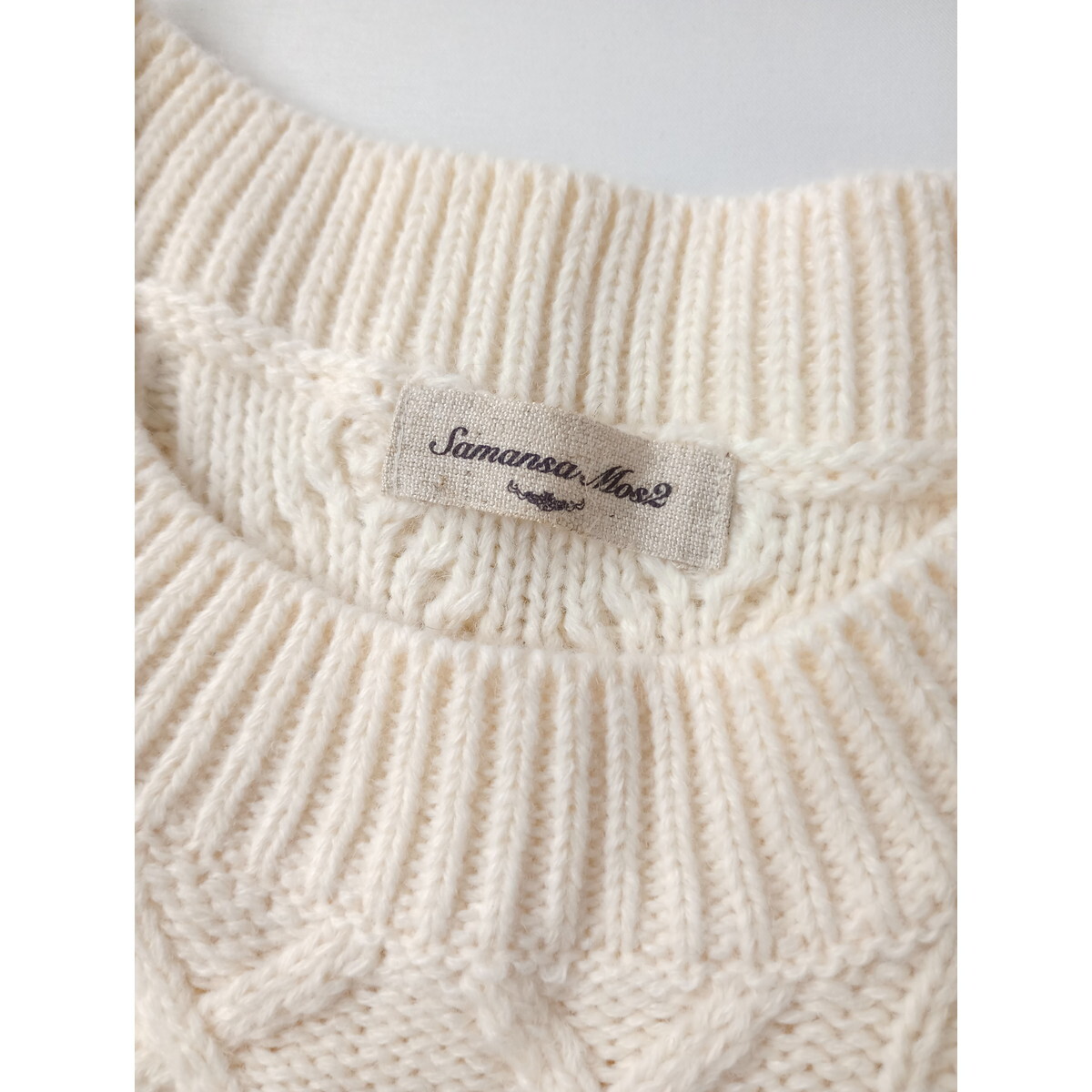 Samansa Mos2 サマンサモスモス「一枚あると心強い」アランニット クルーネック オーバーサイズ ベスト Free アイボリー(18M+5297)●