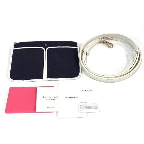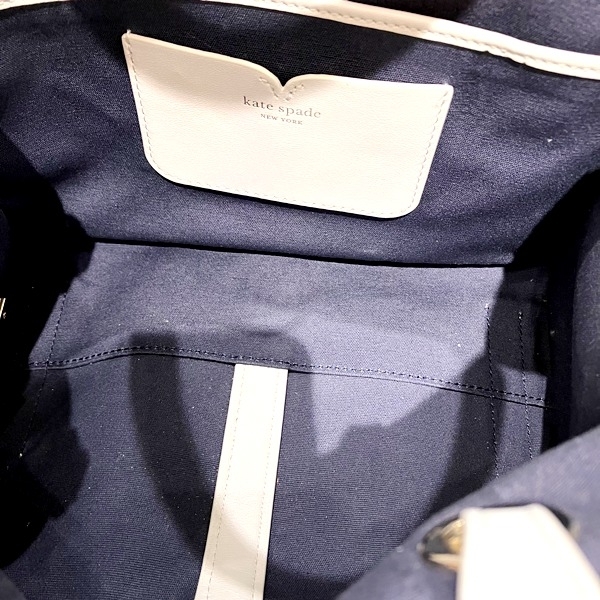 【ブランド】ケイト・スペード 【カラー】ネイビー×ベージュ 【素材】キャンバス地 【仕様】外側:ポケットなし 内側:オープンポケット×1、×1 【サイズ】H約20cm×W約26cm×D約14cm 持ち手:約17cm ショルダーストラップ:約93cm~約110cm【付属品】ショルダーストラップ、ミニポーチ、冊子 【ランク】B (使用感あり) 【状態】 持ち手、ショルダー:擦れ、ヨレ、型崩れ、極小程度有り 外側の状態:擦れ、角擦れ、焼け、色褪せ、極小程度有り 内側の状態:擦れ、傷、極小程度有り 金具の状態:焼け、傷、極小程度有り 付属品の状態:ヨレ、使用感、小程度有り | |