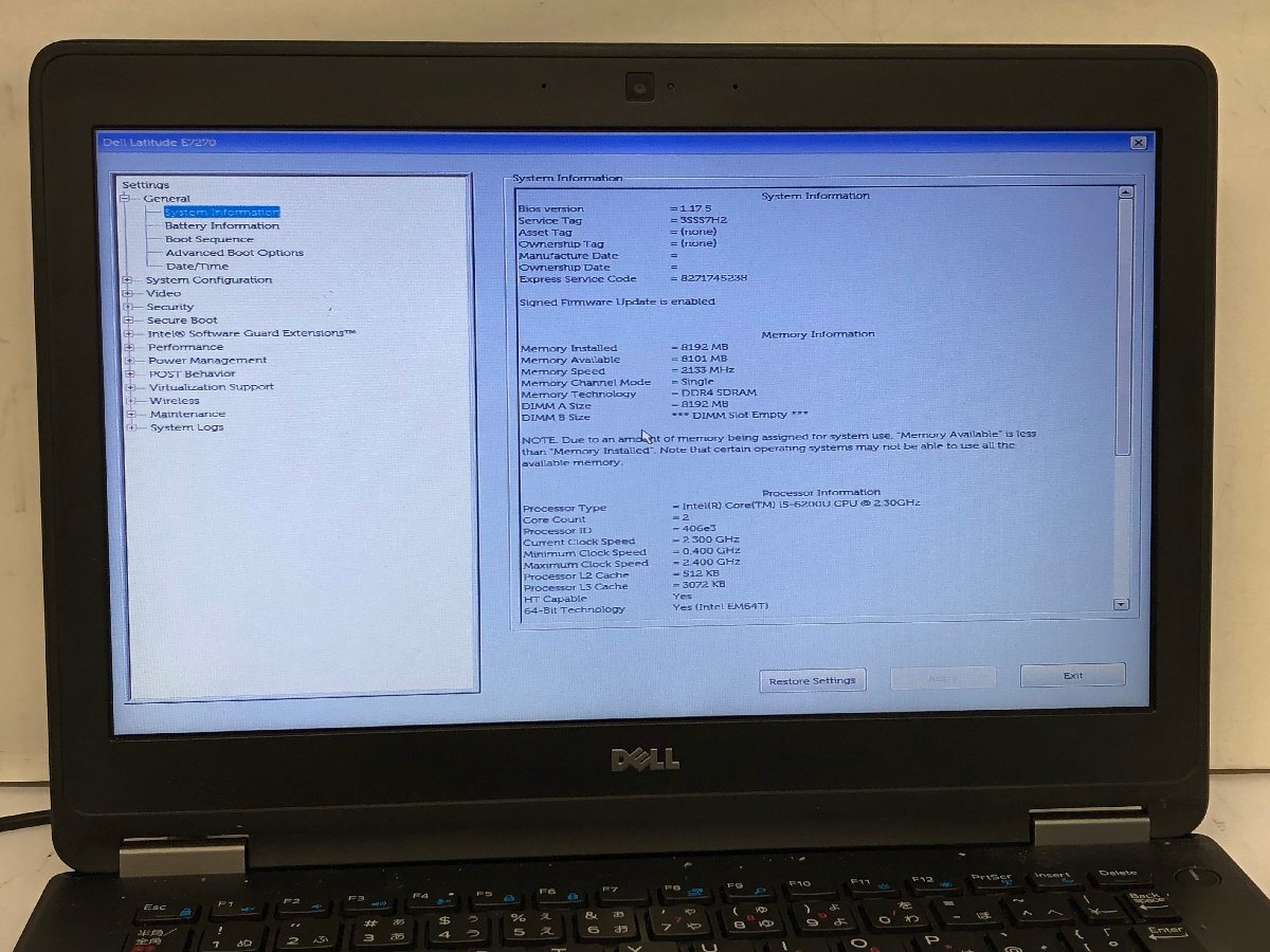 ジャンク/ Dell Latitude E7270 Intel Core i5-6200U メモリ8.19GB ストレージ無し 【K21138】