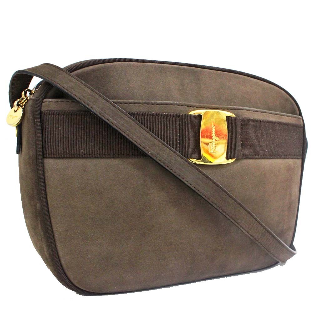 サルヴァトーレフェラガモ ヴァラ金具 ショルダーバッグ レディース スウェード ブラウン BA212559 中古 送料無料 Salvatore Ferragamo