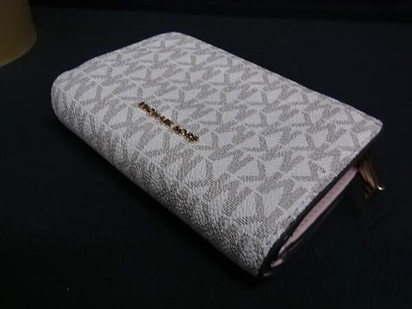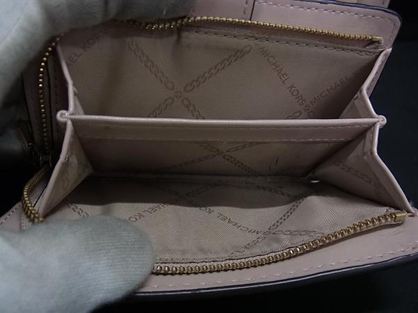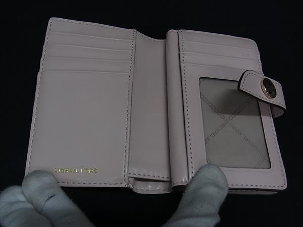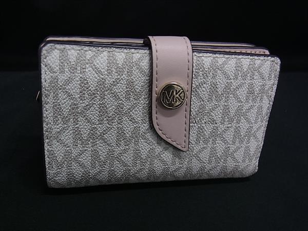 ■美品■ MICHAEL KORS マイケルコース PVC×レザー 二つ折り 財布 ウォレット 小銭入れ 札入れ アイボリー系×ライトピンク系 DK3025