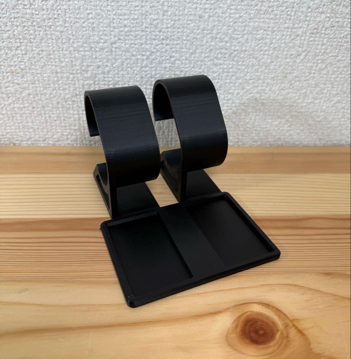シンプルでスタイリッシュなデザインの時計用スタンドです。耐久性のあるプラスチック素材を使用しており、お気に入りの腕時計をしっかりと支えます。ディスプレイ用や収納用に最適です。