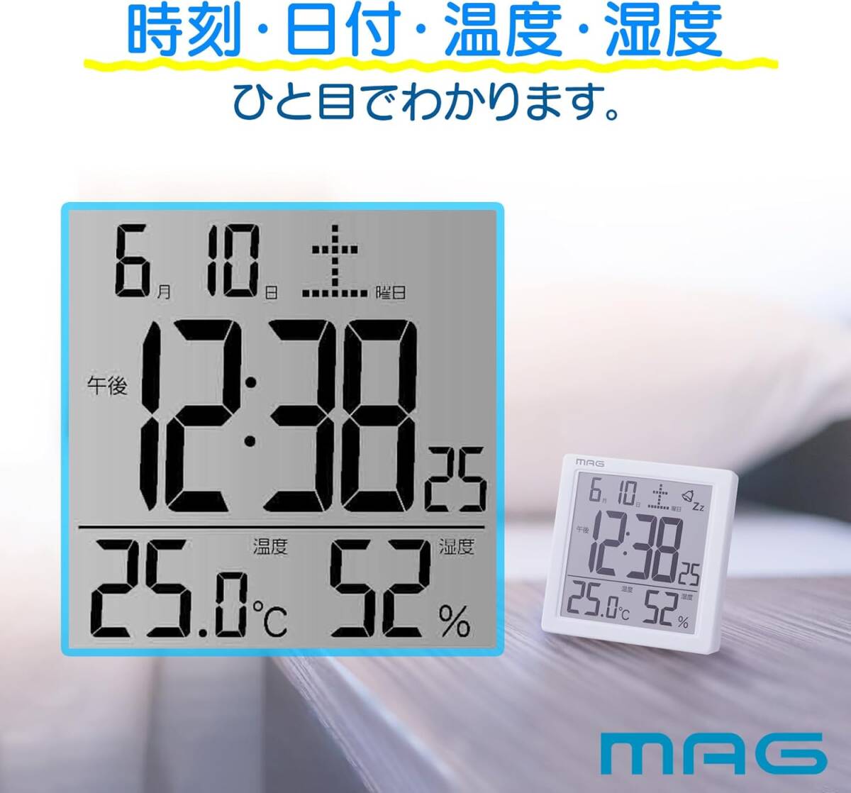 MAG(マグ) 目覚まし時計 デジタル カッシーニ バックライト スヌーズ機能付き ホワイト T-726WH-Z