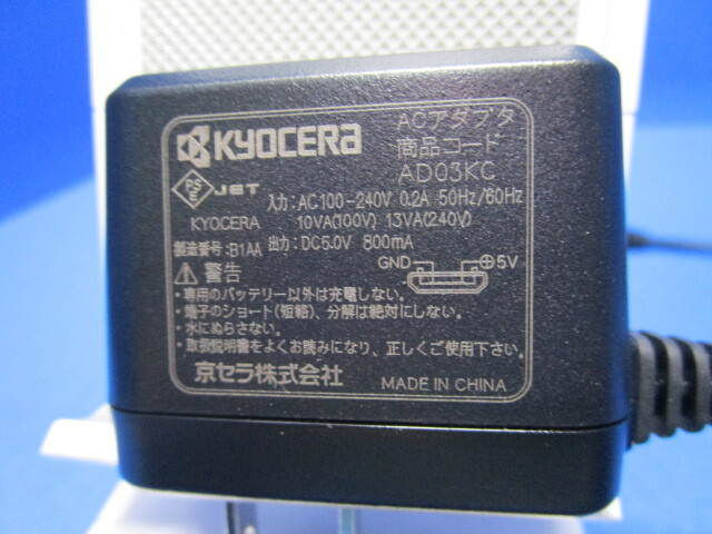 KYOCER純正 京セラ ACアダプタ 充電器 Micro USB コード長:1.2m DC5.0V 800mA AD03KC ブラック ★q