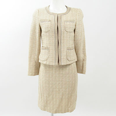 | アナイ ANAYI 茶 白 ツイード スーツ 36 | ||||