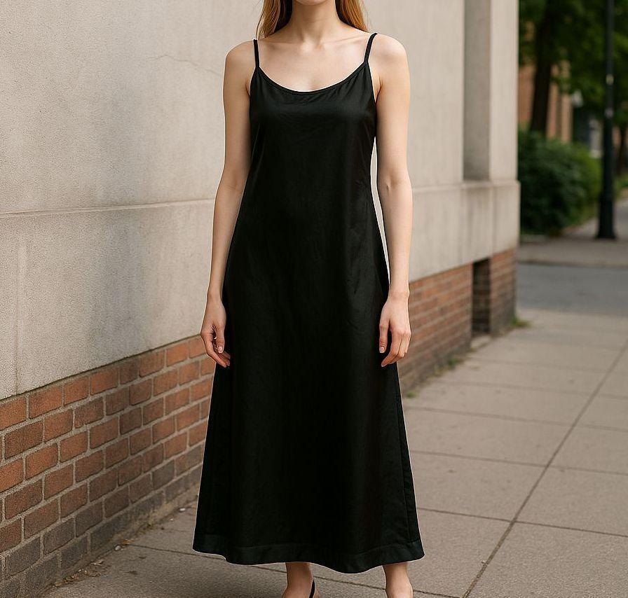ノースリーブなので、ジャケットやカーディガンを羽織ってももたつかず、すっきりと着られます。
