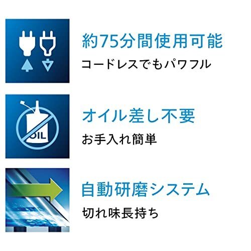 8時間充電で約75分間使用可能(コード付きでもコードレスでも使用可能)