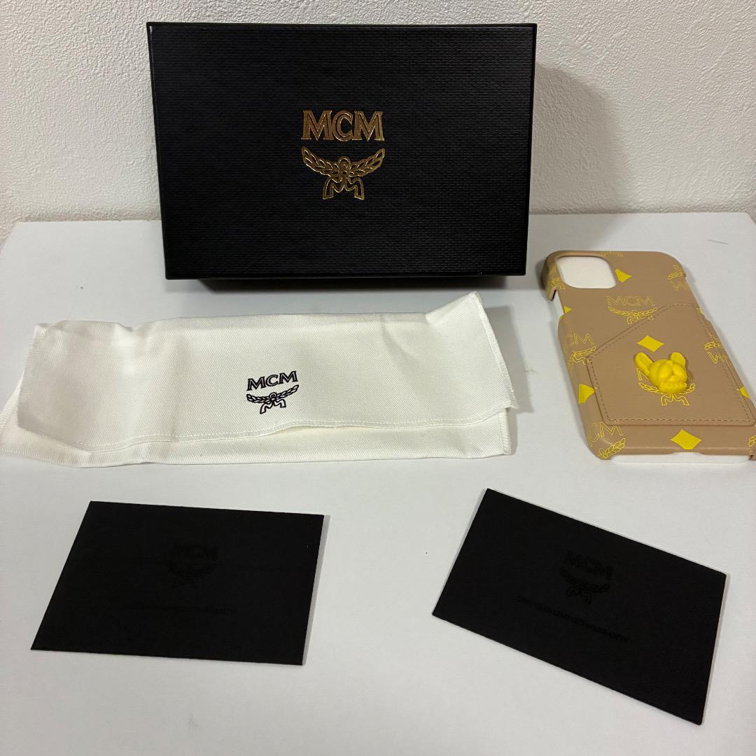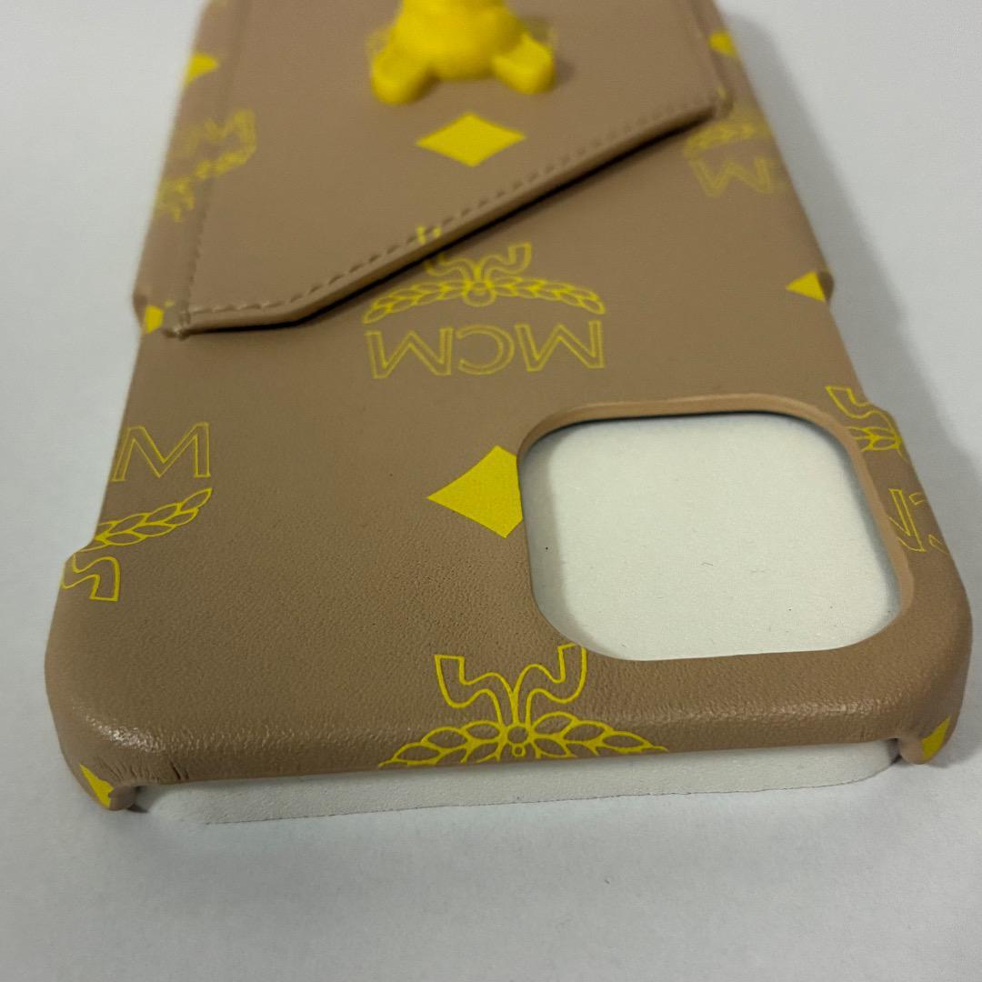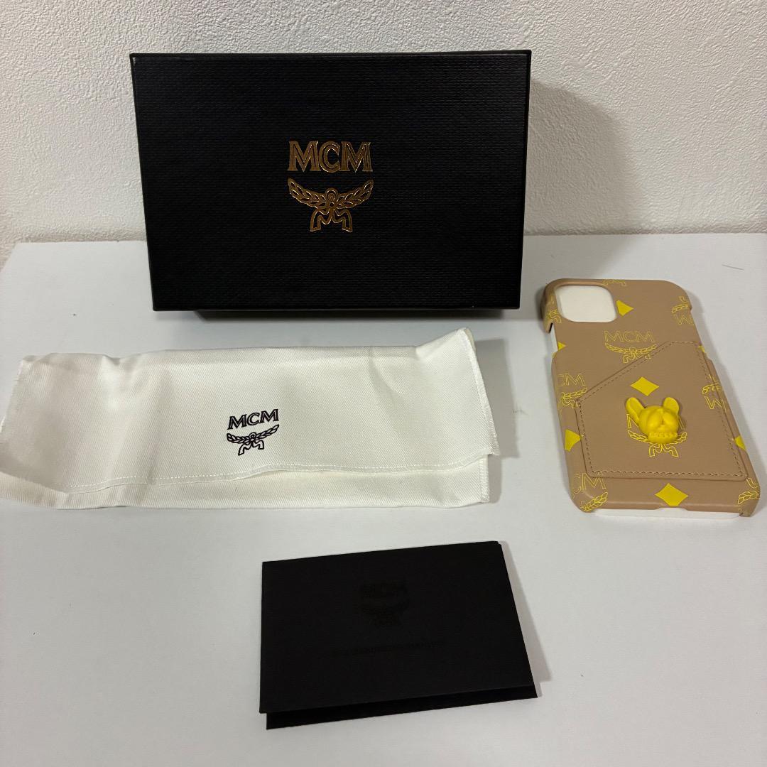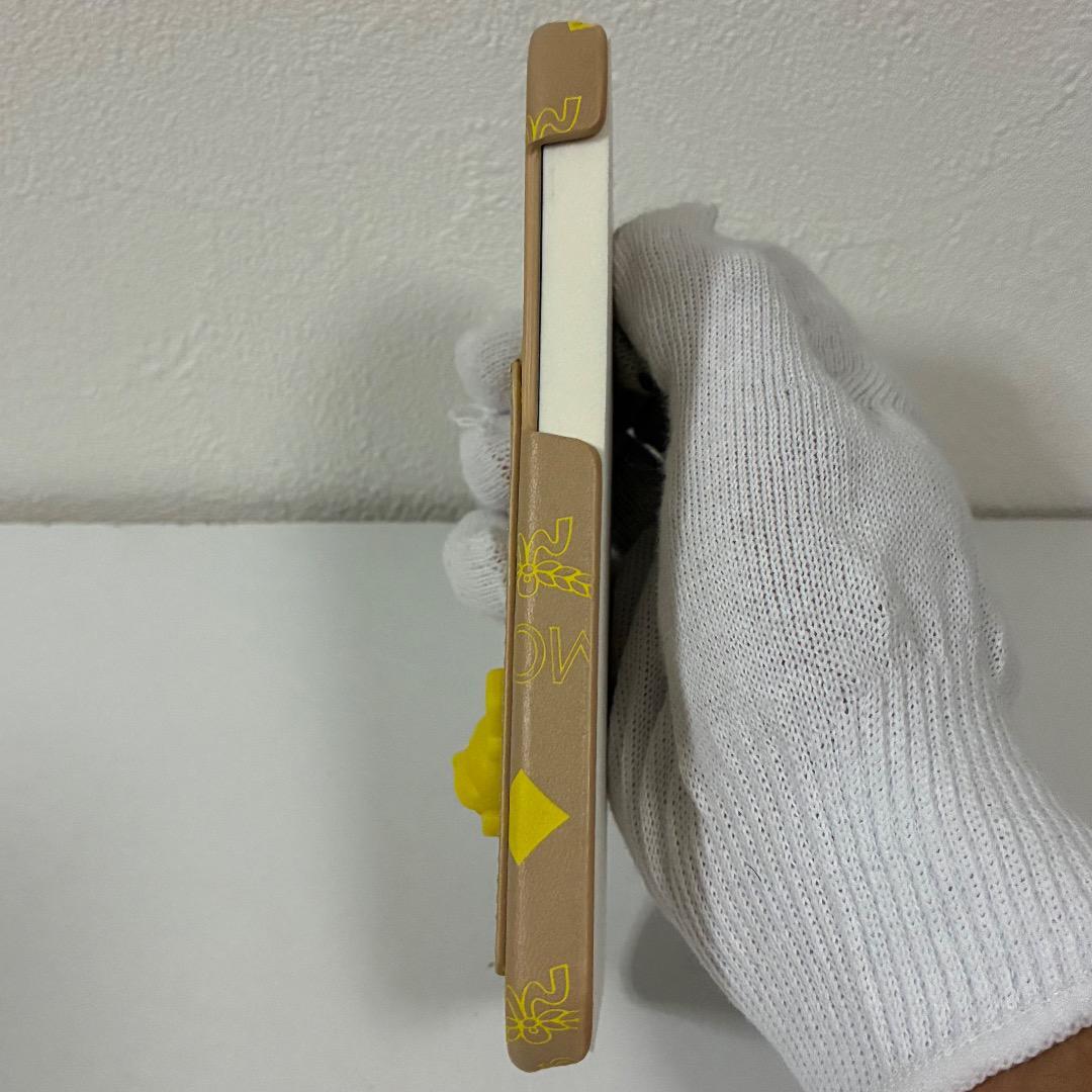 MCMのベージュiPhoneケース、イエローモチーフ付き、付属品完備。