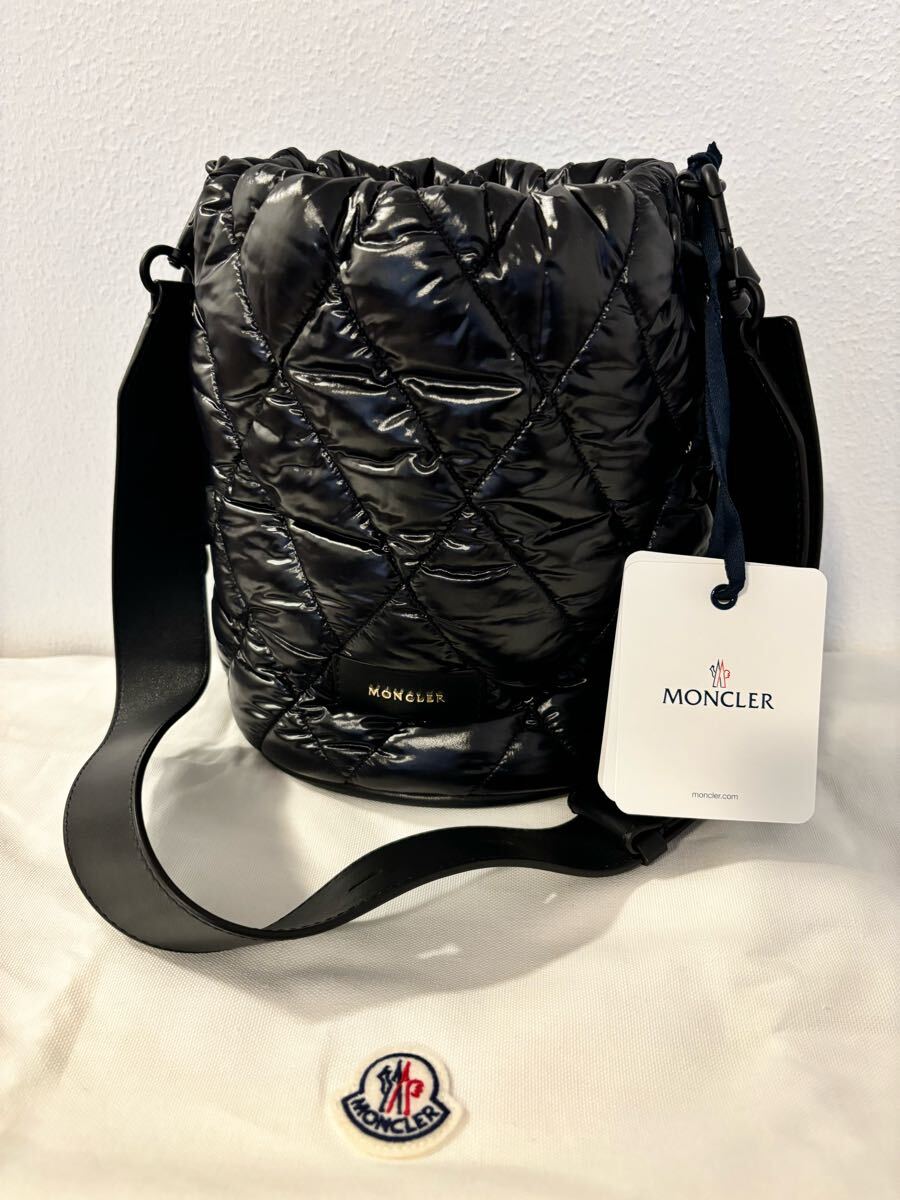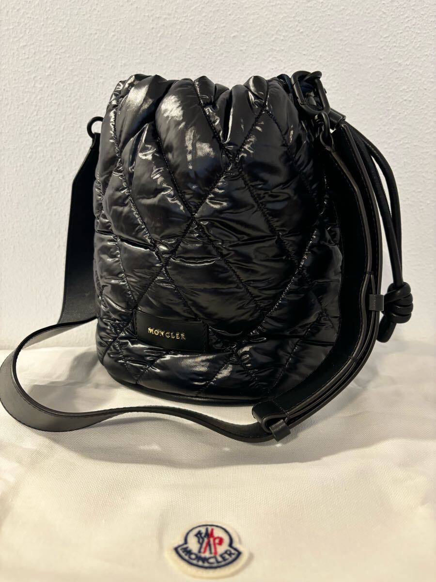 新品未使用参考15.5万 モンクレール ショルダーバッグ MONCLER バケットバッグ キルティング肩掛けレディース バック 黒 ロゴ 本革