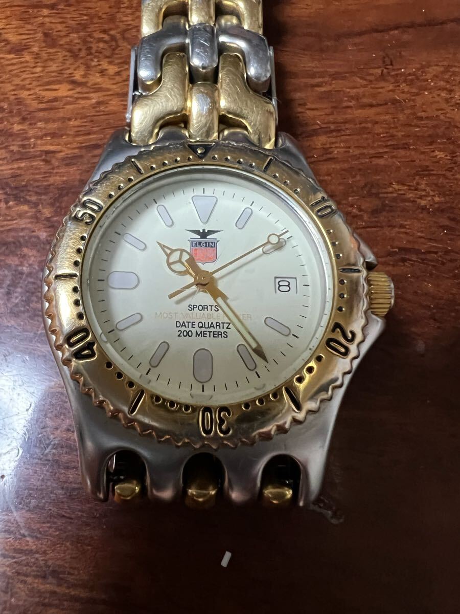 ELGIN/エルジン/SPORTS/スポーツ/FK-358-A/3針/デイト/コンビカラー/ラウンド/200M/クォーツ/メンズ腕時計稼動品