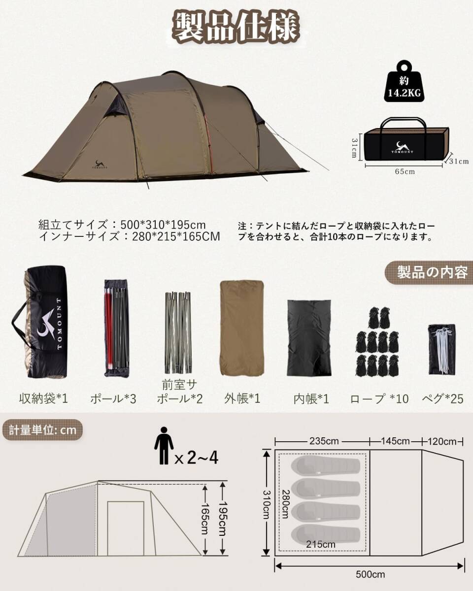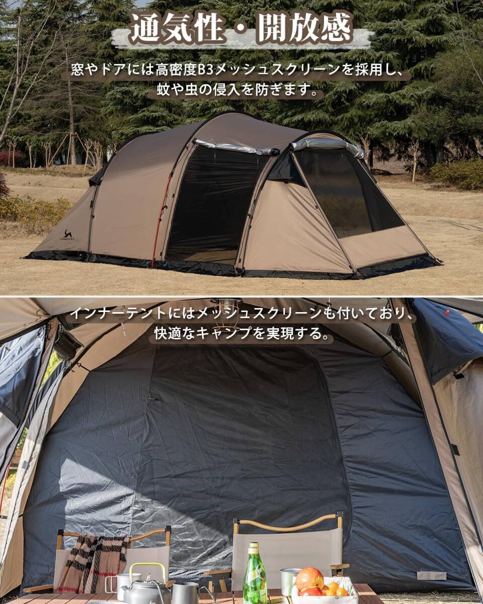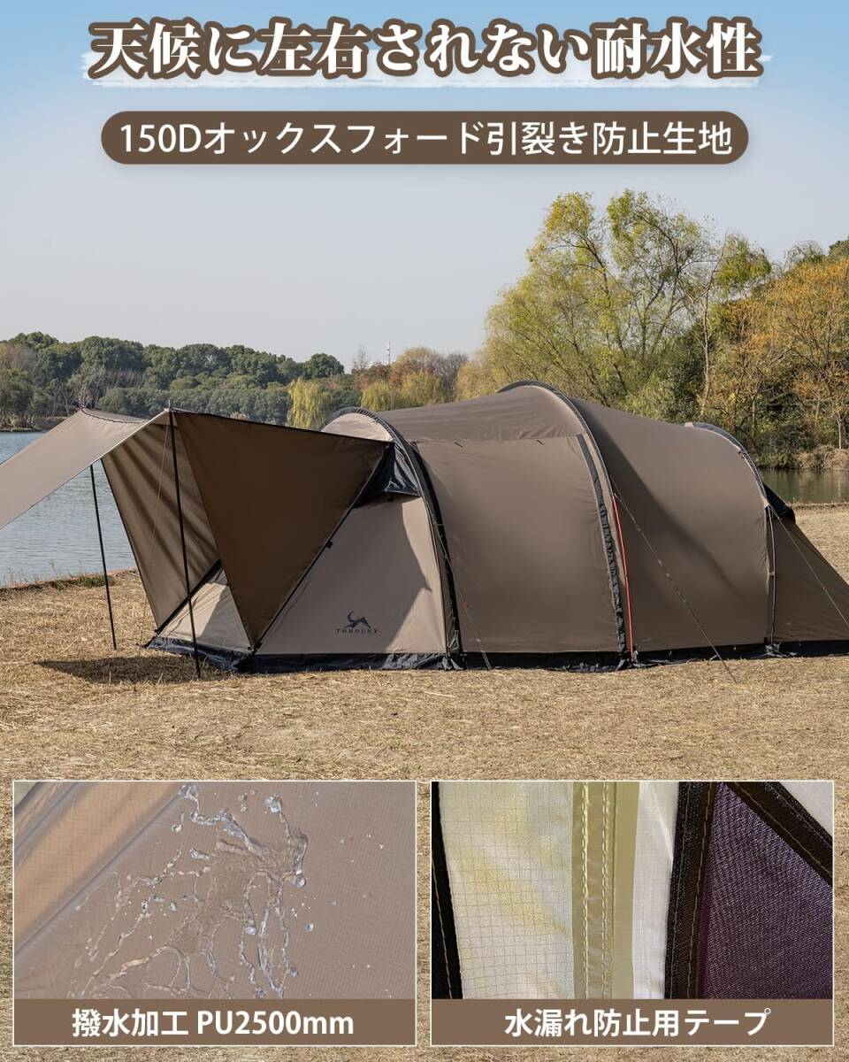 MC トンネルテント 2ルーム 耐水圧3000mm シルバーコーティング コンパクト ファミリーテント 3~4人用 前室付き ツーリングテント