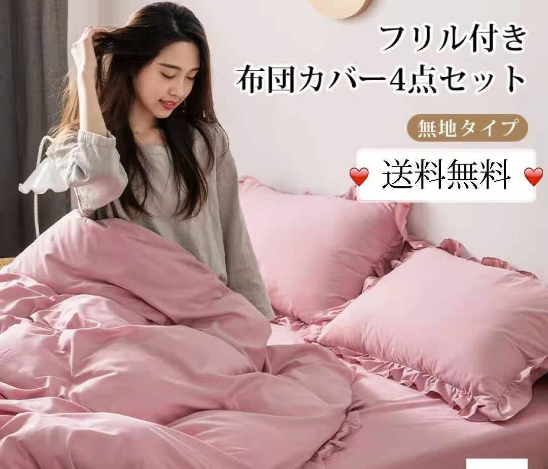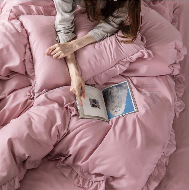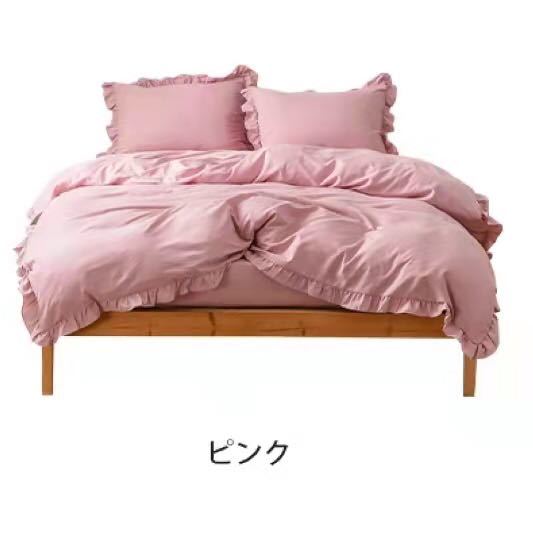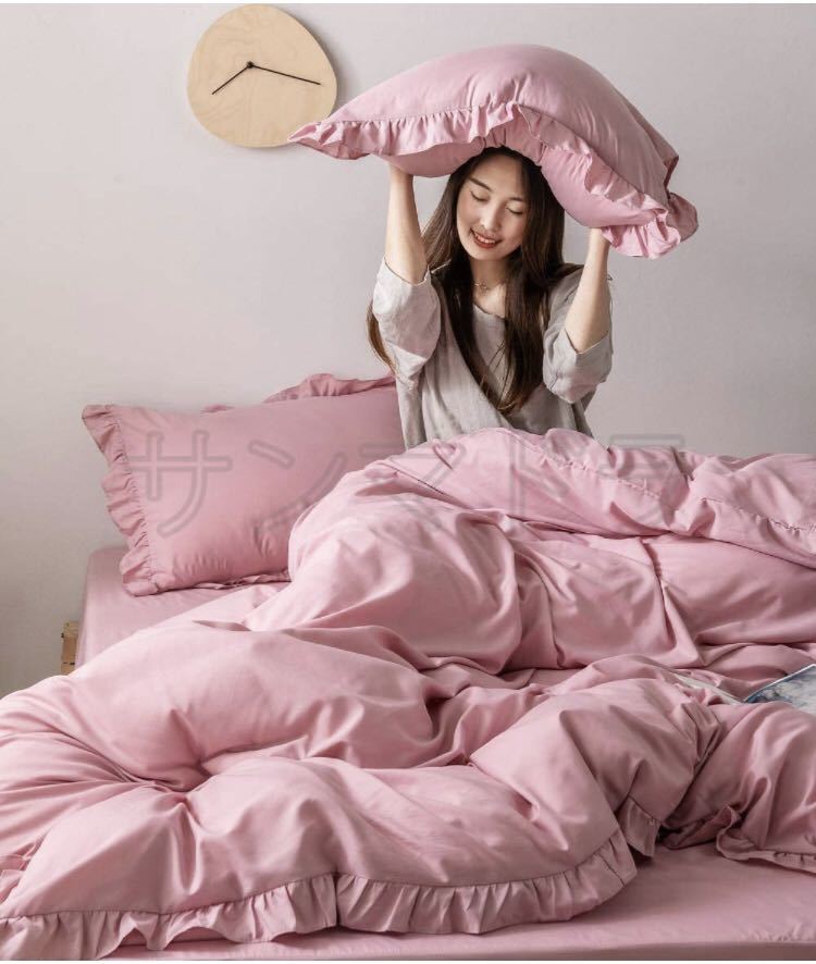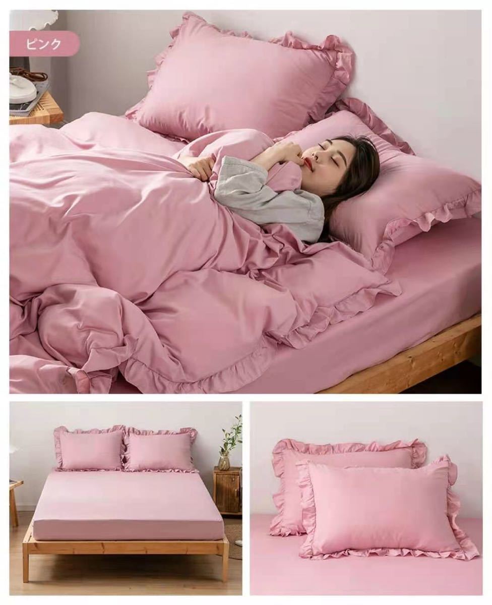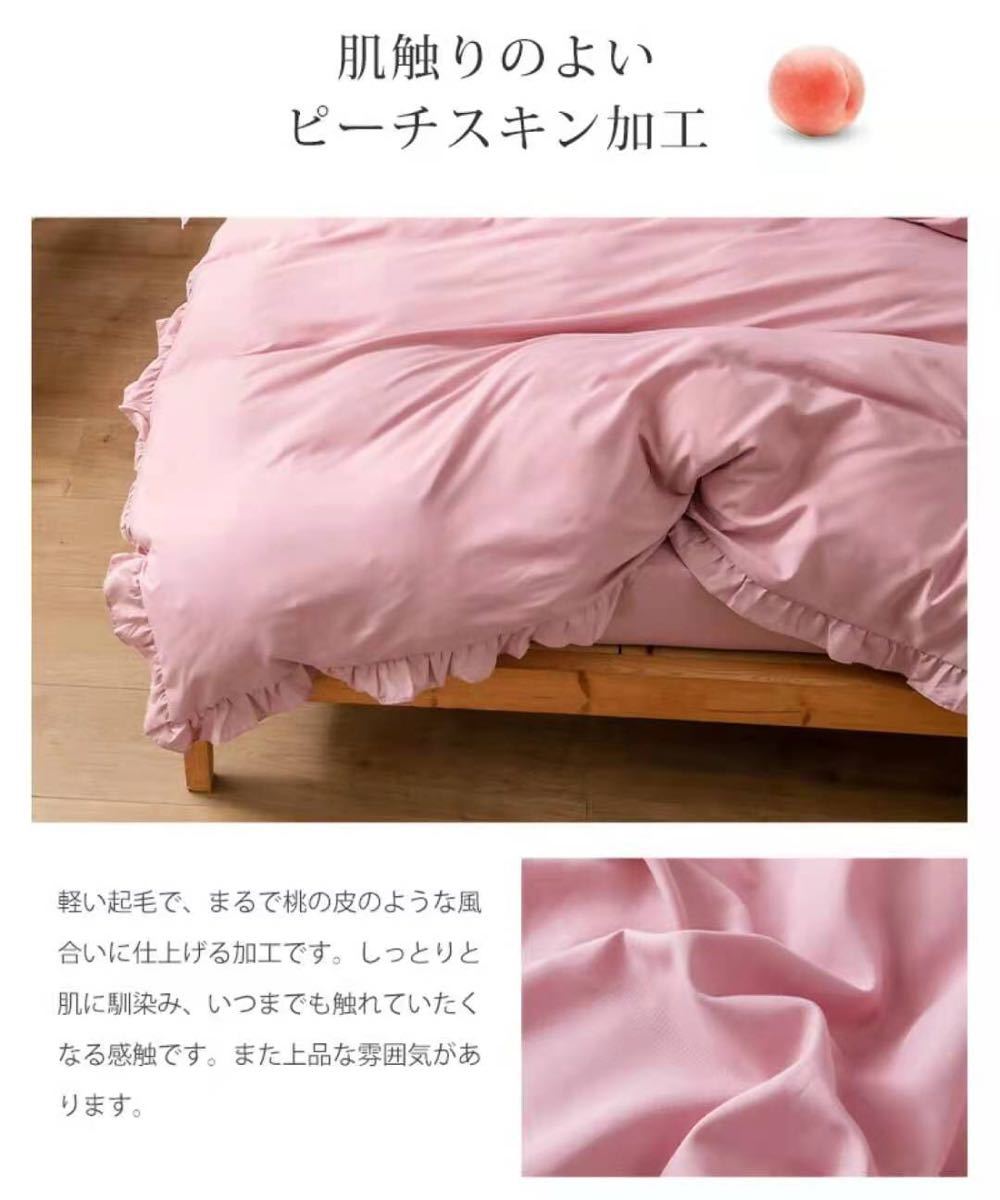 <セミダブル4点セット内容>掛け布団カバー・170X210cm ベッドスカート・125X215+30cm 枕カバー・43X63cm(2枚)