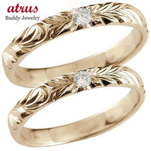 職人が一点一点丁寧に手彫りし、中央にはダイヤモンドをセットしたペアリング