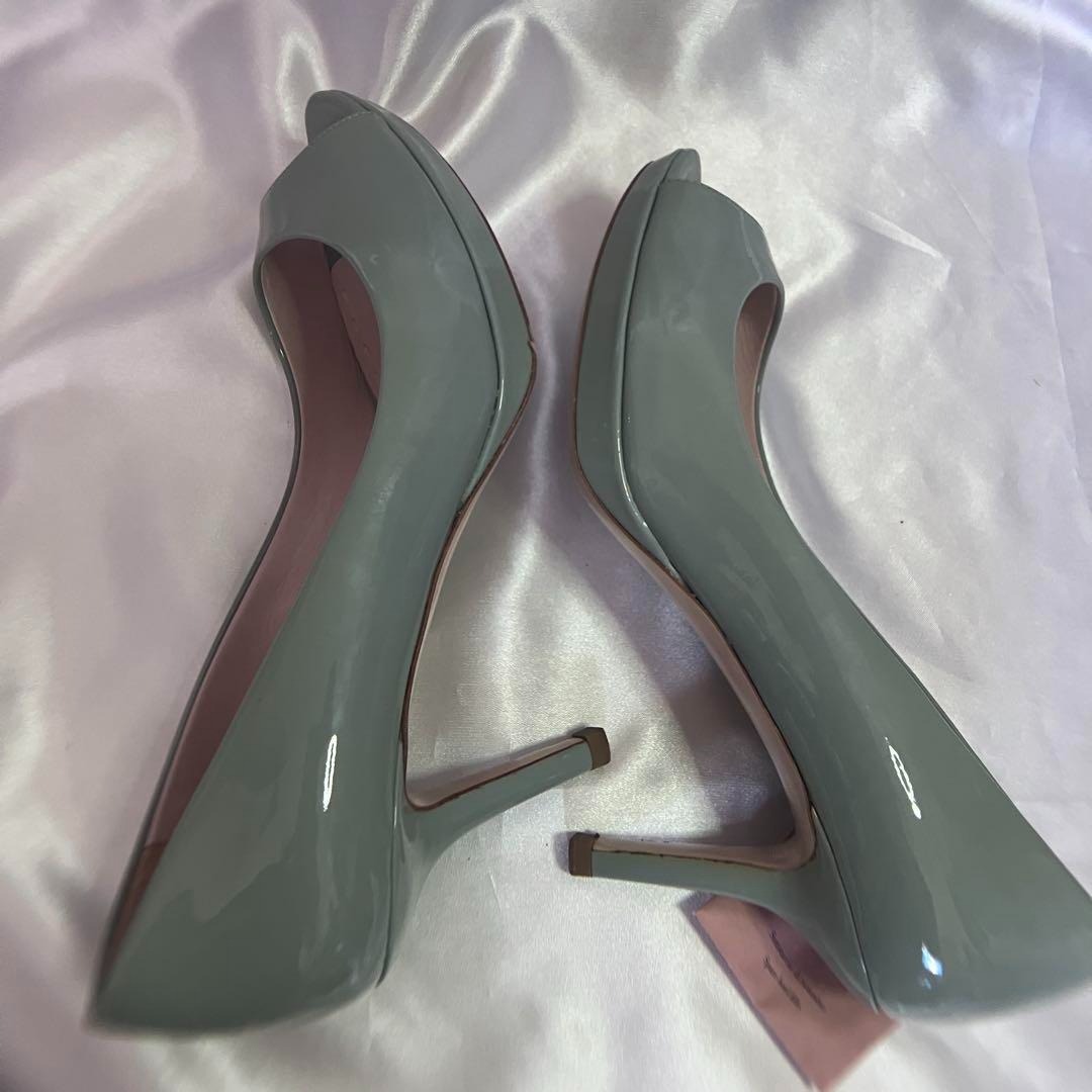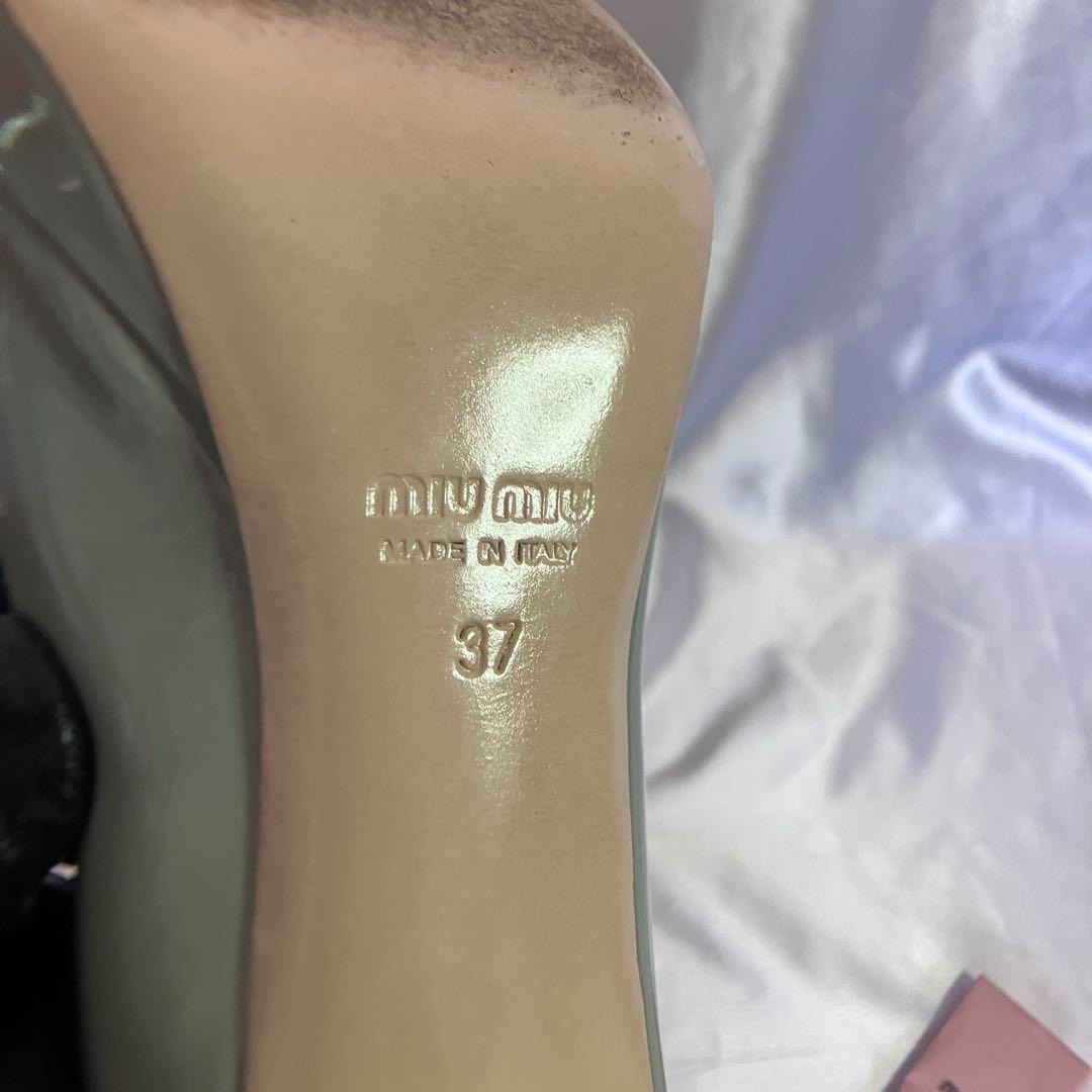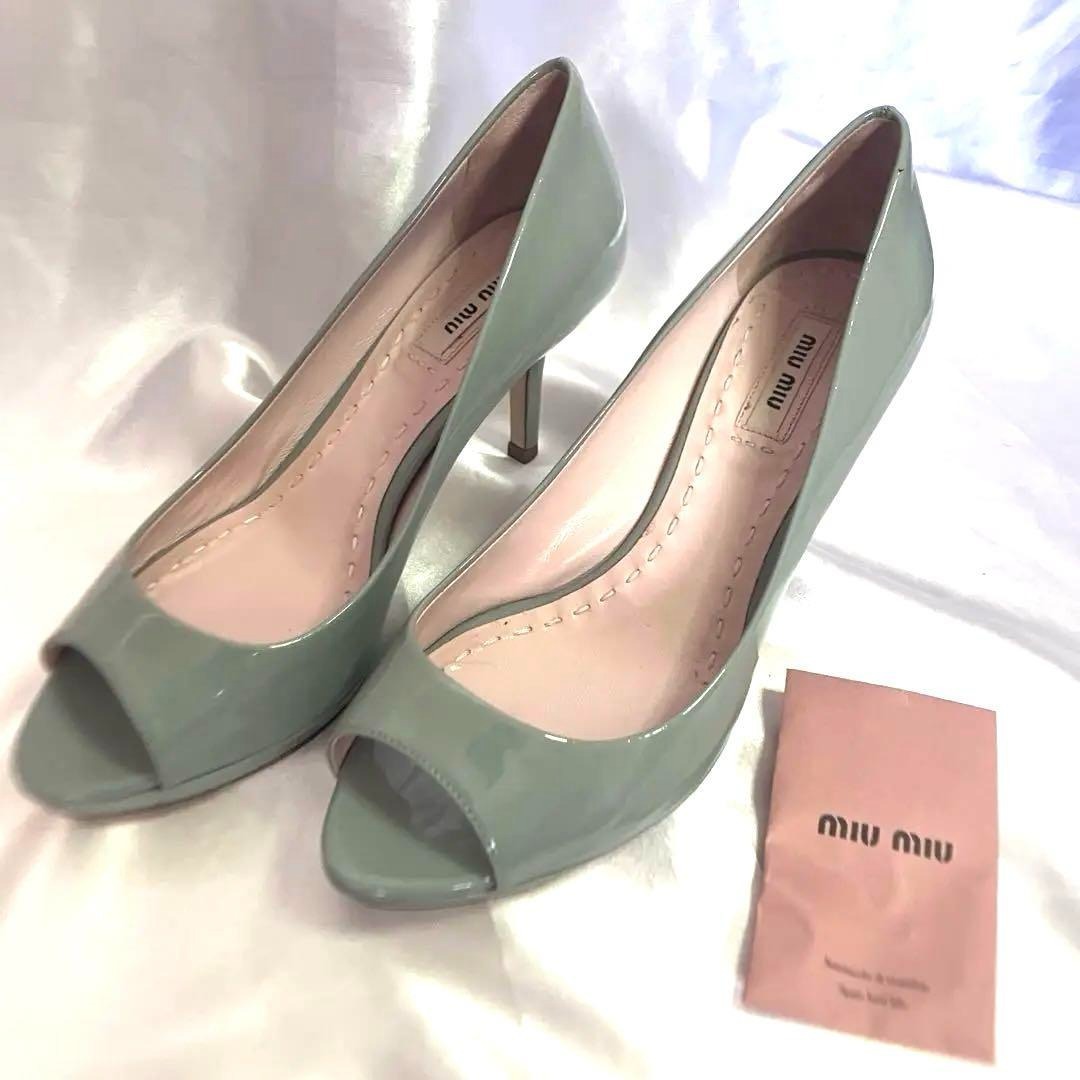 miumiu パンプス ミュウミュウ 24cm 37 ヒール7㎝ エナメル 箱付き ミントグリーン エナメルパンプス 希少色 オープントゥ ハイヒール