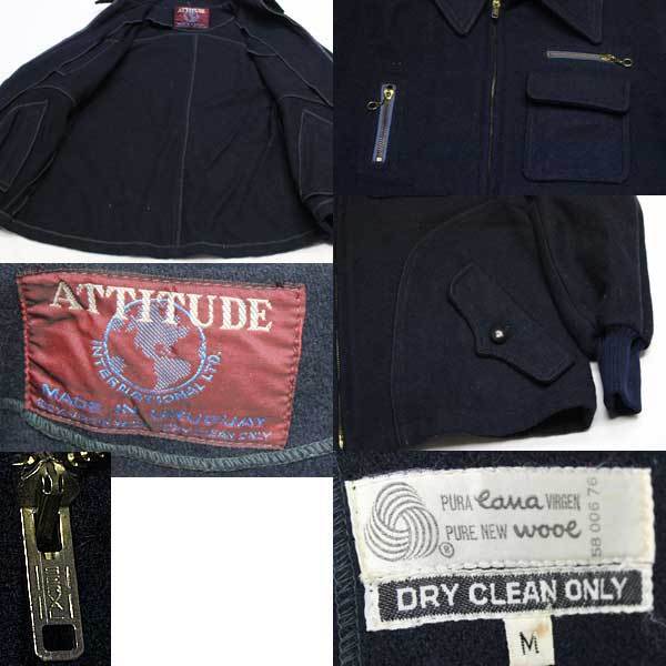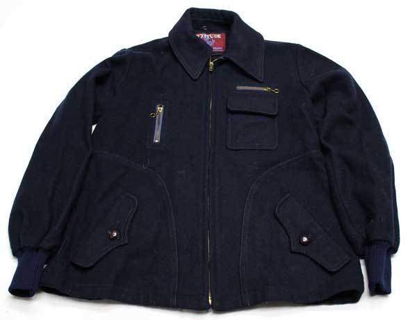 アメリカで買い付けましたUSEDのATTITUDEの70年代頃のウールジャケットで色は黒に近い濃紺が近い感じで両胸&両腰にポケット装備のZIPはSERVAL製です。