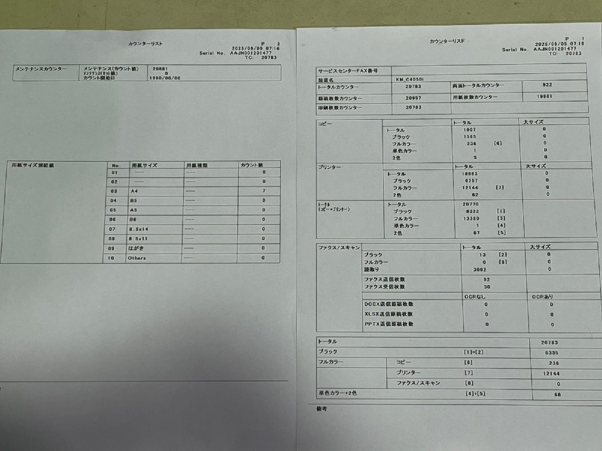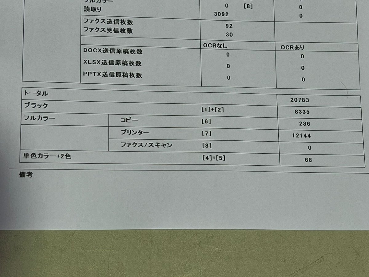 印刷枚数20783枚(ブラック:8,335枚)