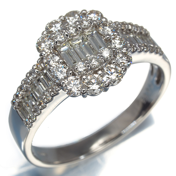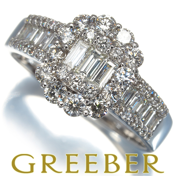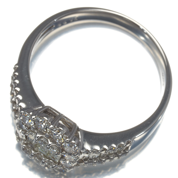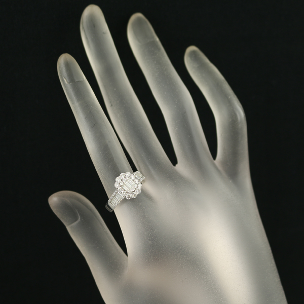 ニアカラーレスと思われる総計1.00ctもの2種カットダイヤモンドが華やかな輝きを披露するプラチナリング。VSクラスメインと思われる上質な透明感を持つ1石1石がお手元を照らしてくれることでしょうね。 |