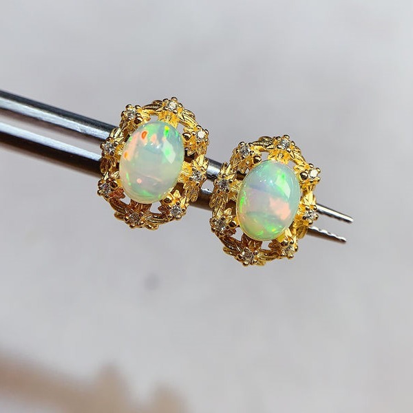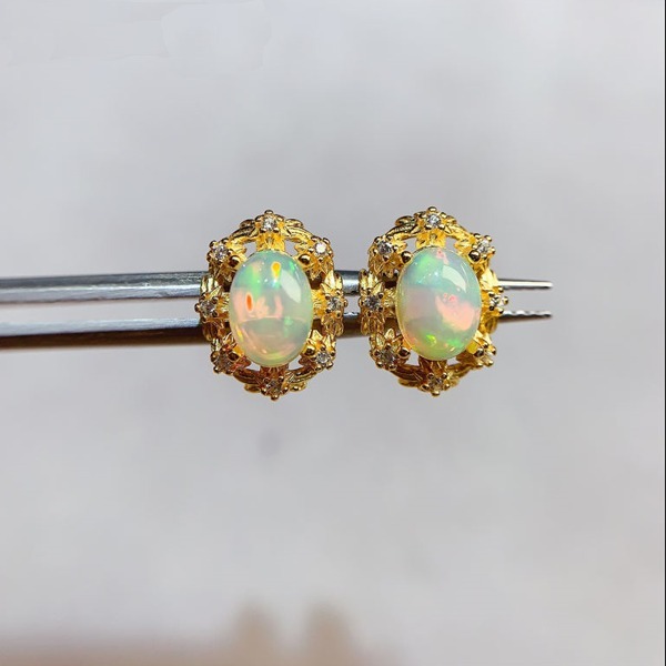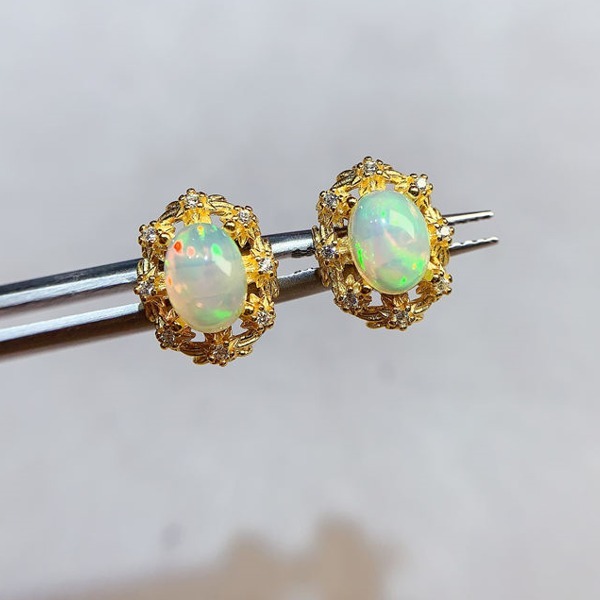 天然オパールピアス S925 スターリングシルバー 5X7mm 女性のためのファインチャームウェディングジュエリー