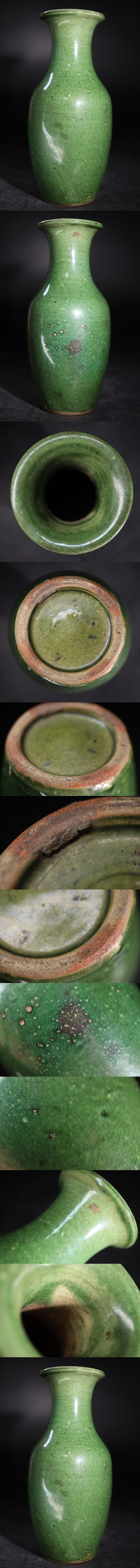 | 時代 緑釉 花瓶 / 花器 壺 煎茶道具 検索: 中国美術 青磁釉 交趾 珉平焼 .G2500 |