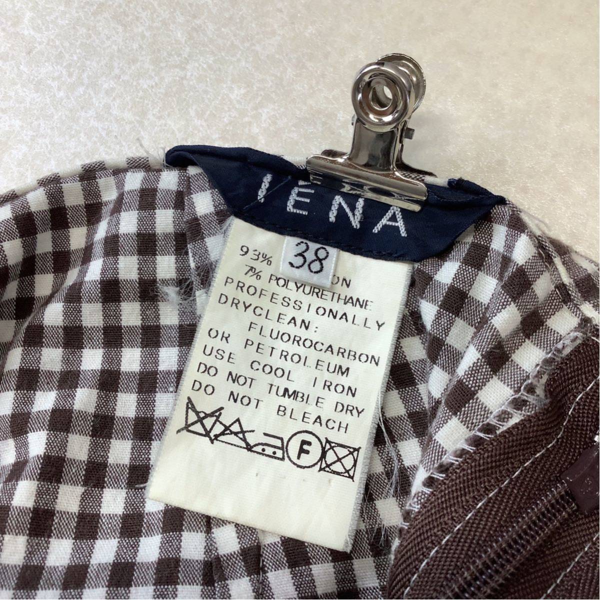 美品 IENA イエナ ギンガムチェック パンツ レディース 38 Mサイズ ブラウン ホワイト