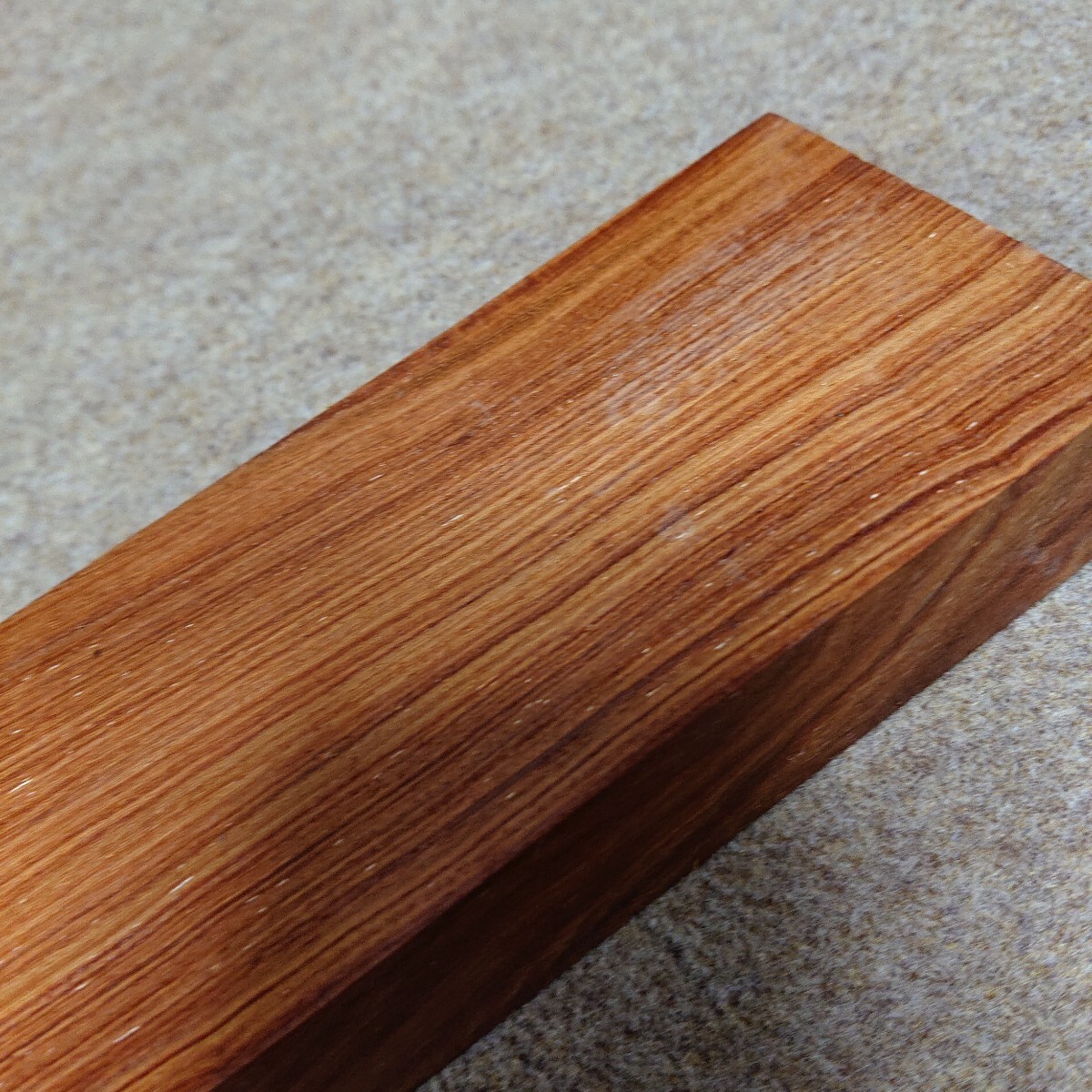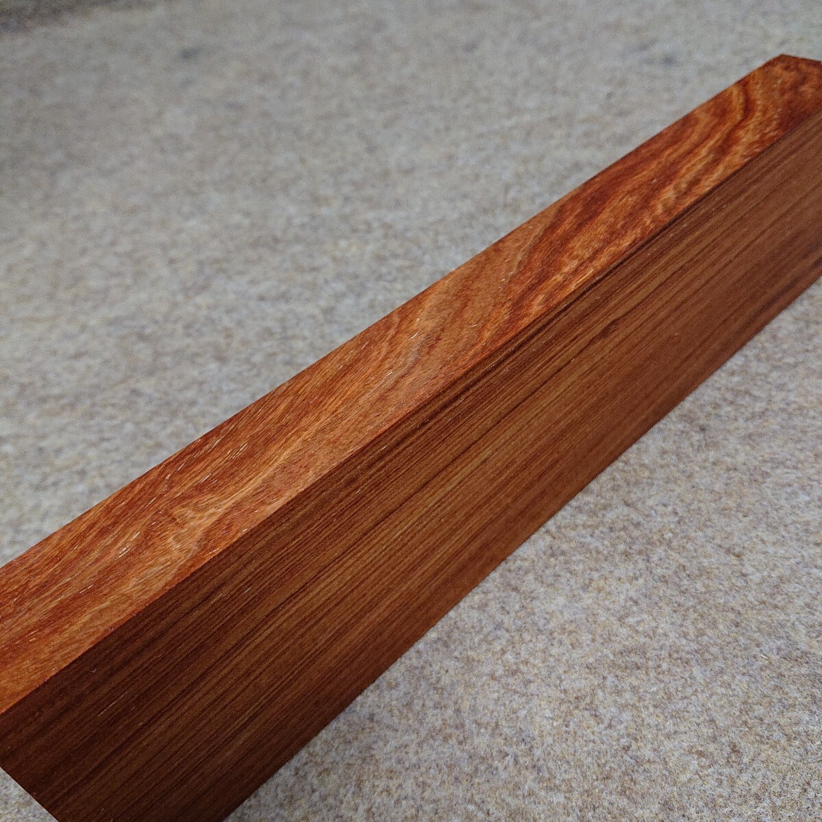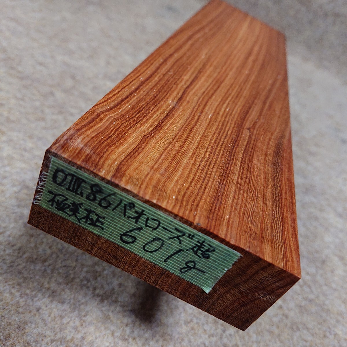 希少銘木パオローズ超極美柾極縮み杢の幅広厚ブロックです。約長さ279mm 幅70mm 厚さ29mm 601gです。杢を見やすくするために水引きをして撮影しています。たいへん美しい柾と縮み杢が浮かび上がっています。乾燥良材です。