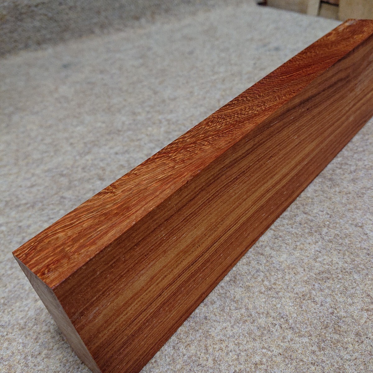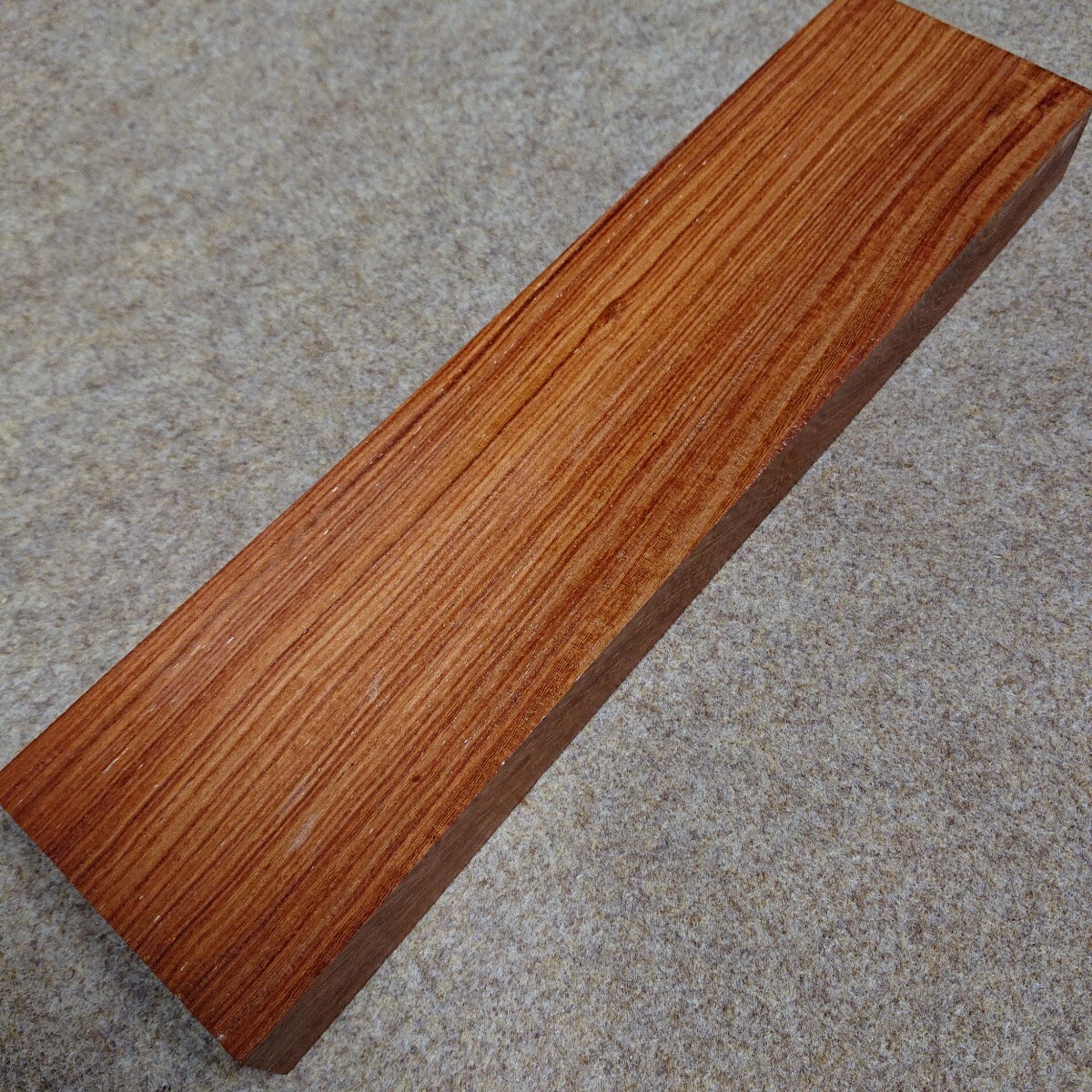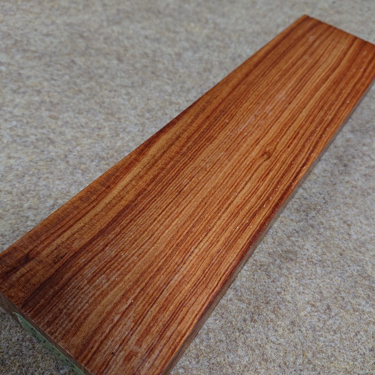 希少銘木パオローズ超極美柾極縮み杢の幅広厚ブロックです。約長さ279mm 幅70mm 厚さ29mm 601gです。杢を見やすくするために水引きをして撮影しています。たいへん美しい柾と縮み杢が浮かび上がっています。乾燥良材です。