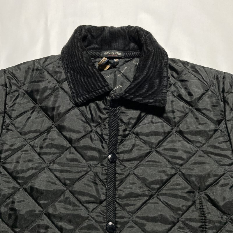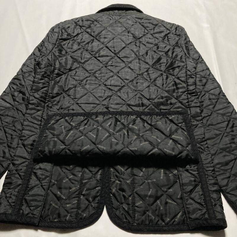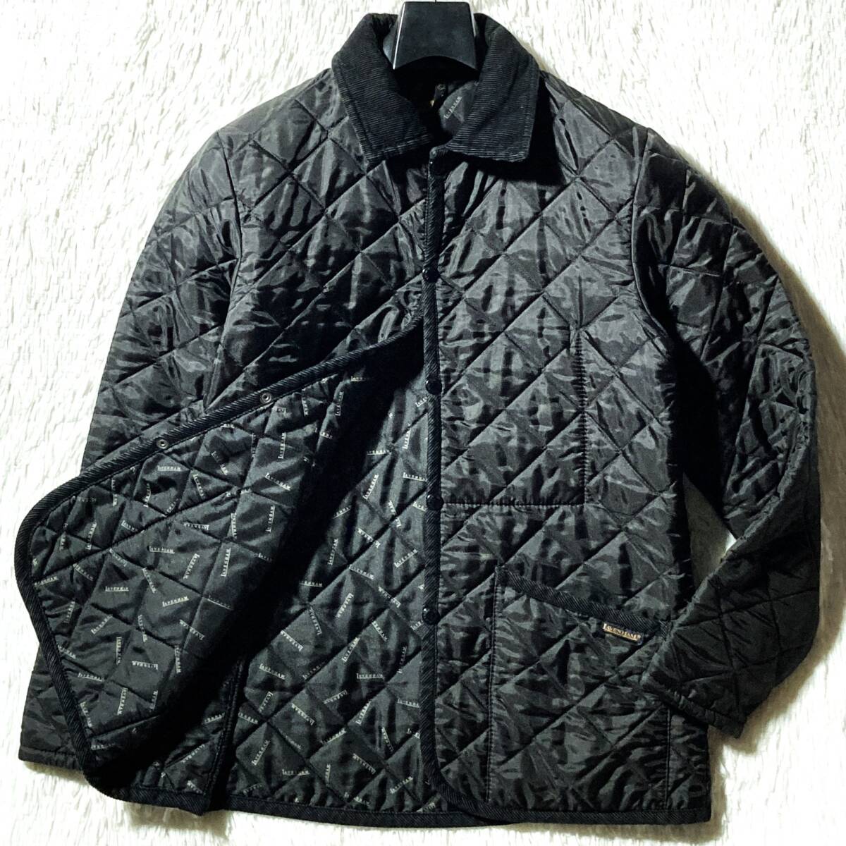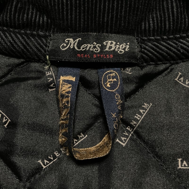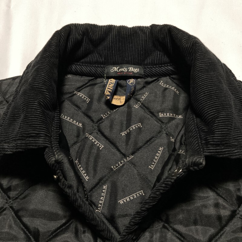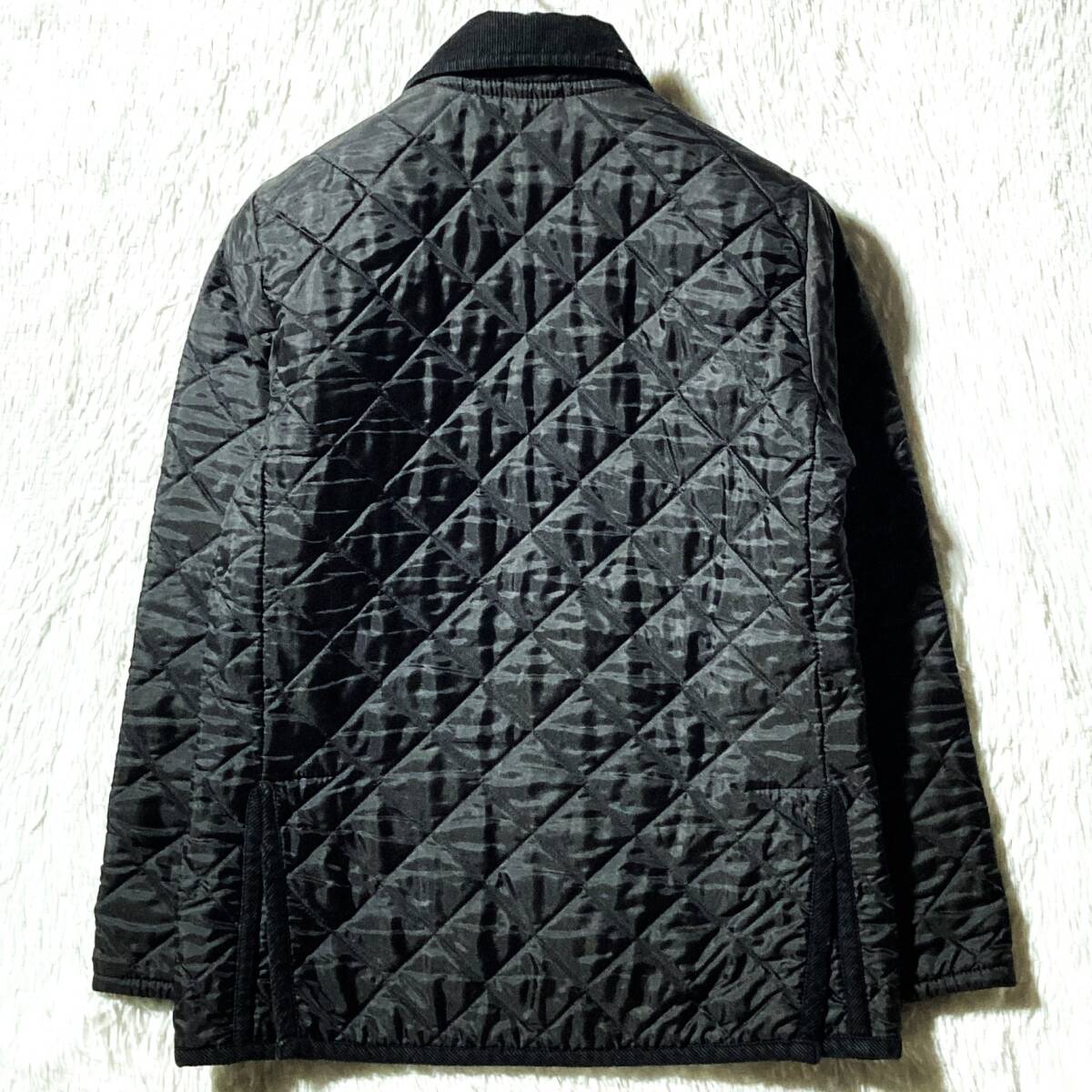 LAVENHAM×MEN'S BIGI★コラボ激レア★英国製★キルティングジャケット 総ロゴ裏地 襟コーデュロイ 黒 2 ラベンハム メンズビギ