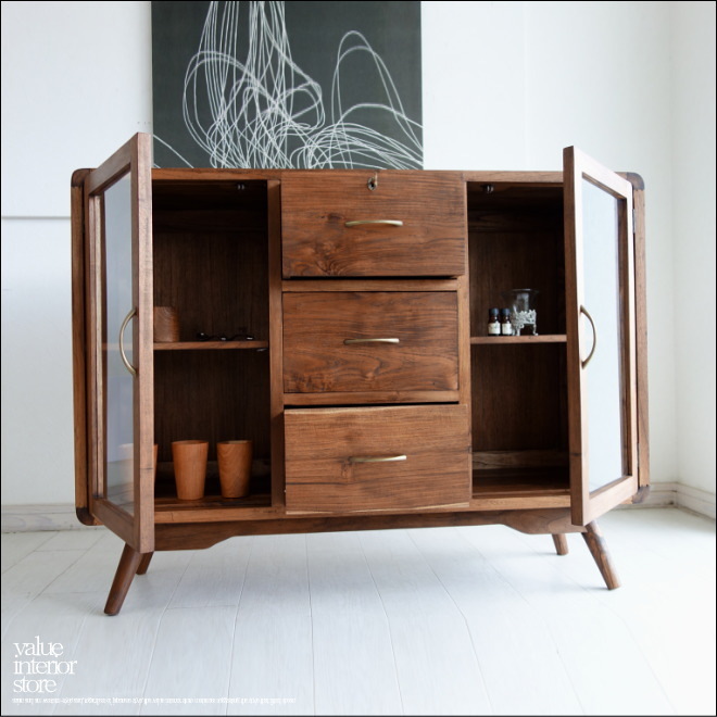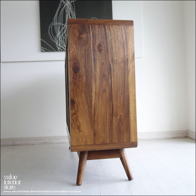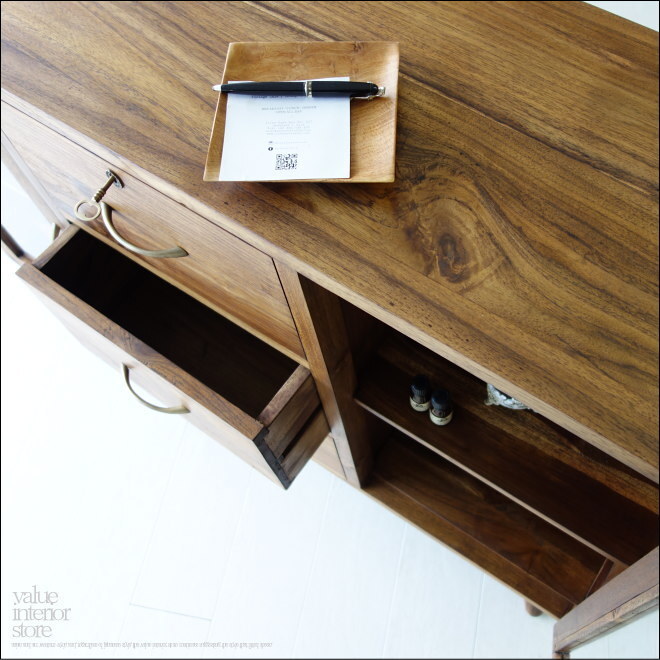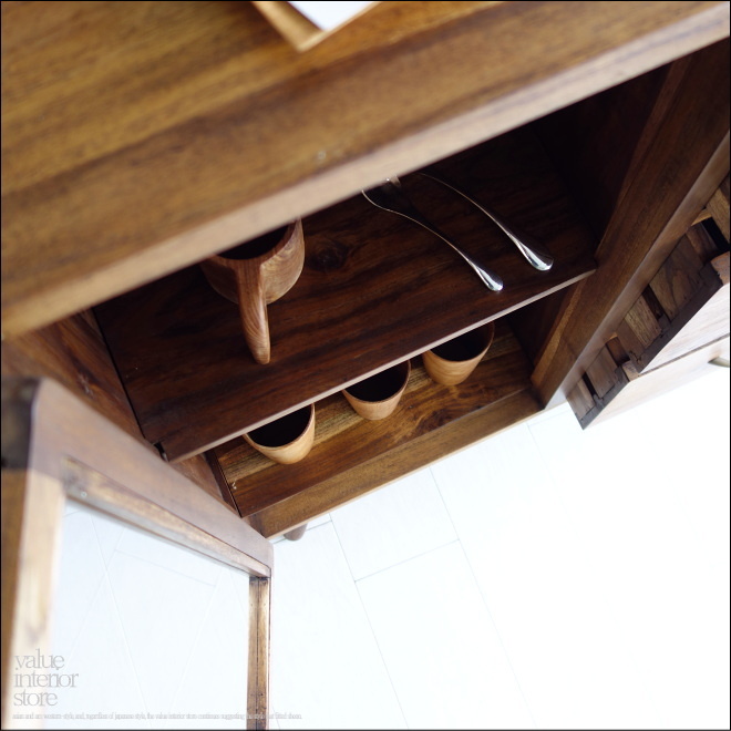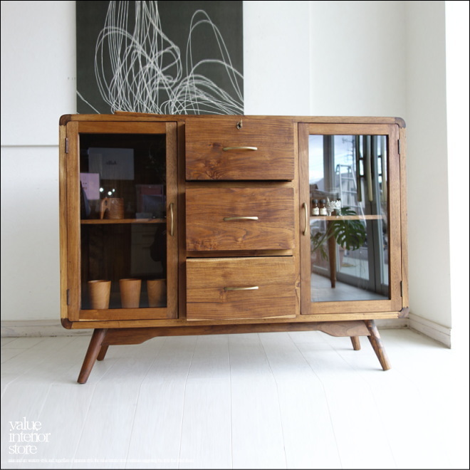 ■商品名 チークbuffet2枚扉Med *こちらの商品は他サイトでも同時に販売を行っております。ご注文が重なりました場合、在庫状況によって販売をさせていただけない場合がございます。その際はご容赦いただきますよう何卒お願い申し上げます。 ■商品説明 チークの持つ張りと硬く美しい木目の特徴を引き出していて、無垢材の素朴で上質さを十分に感じさせてくれるキャビネット。角が丸みを帯びたデザインですのでとても上品かつ優しい印象の仕上がり。サイドボードや食器棚、本棚など幅広い用途でお使いいただけます。また、チークは油分を多く含みますので、お使いいただくうちにさらに色味に深みが増すところも楽しみの一つです。引出しも3段あるので細かなものの収納にも便利です。一番上の段は鍵つきでレトロな雰囲気なのもいいですね。1点1点手作りで、無垢材の質の良さを感じさせてくれます。お気に入りスペースでお使い下さい。 ◇チーク材は世界三大銘木の一つとして知られ、硬さと張りがあり良質の天然油分を含むことから耐久性に優れています。特に細かな美しい木目が特徴で家具や建材など世界中で人気の高い木材です。 ◇日本製のような正確さは無いかもしれませんが、1点1点出来上がるまでの殆どの製作工程を手作業で行う、インドネシア家具職人たちの手づくり製法はとても暖か味が感じられます。細かな傷、ひび割れやフシ穴、色の濃淡、また反りなどの無垢材特有の”暴れ”や修理痕が見受けられる場合がございますが、無垢材の素材や特徴、また手づくりのテイストとして工業品にはない自然の質感をお楽しみ下さい。 ◇画像はサンプル画像となります。天然木や手作業での表面仕上げのため、木目や仕上がりの風合い(お色味の濃淡)は多少異なります。 ◇チーク無垢材は人間のお肌同様に、長時間、直射日光や冷暖房の風のあたる場所や湿気、乾燥が著しい場所を嫌います。反りや割れ、退色の原因になりますのでお避けください。 ■仕様 ・サイズ : (全体)横120×奥38×高さ90cm (奥行きは真鍮の取っ手も含む) 両サイド収納部内径:横38×奥32(下段31.5cm)×高さ[上段31.5cm、下段33.5cm] 引き出し内径:横34×奥27.5×17cm ( ※サイズは、ハンドメイドのため製品により多少誤差がございます。予めご了承ください。 ) ・材質 : チーク無垢、真鍮(ハンドル)、ガラス、裏板、引き出し底板のみ合板 ・塗装(表面仕上) : ミディアムブラウン塗装(天然オイル) ・生産国 : インドネシア ■備考 ◇掲載画像は十分配慮しておりますが、撮影時の光の反射や光量により明るさや色彩に違いがでますことや、素材の性質上、仕入れ時の材料によっても色味に多少濃淡がございます。また、ブラウザ上ではお色を正確に再現ができませんことを予めご了承下さい。 ◇商品はチークbuffet2枚扉Med×1点です。その他はイメージです。 ◇こちらはギフト包装をお受けできません。 |