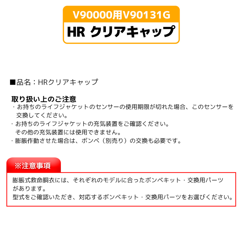 商品名 | ライフジャケット 膨脹式 交換用 HRクリアキャップ 製品番号6010 交換 部品 整備 パーツ V90000用 V90131G 高階救命器具 BLUESTORM | ||||||||||