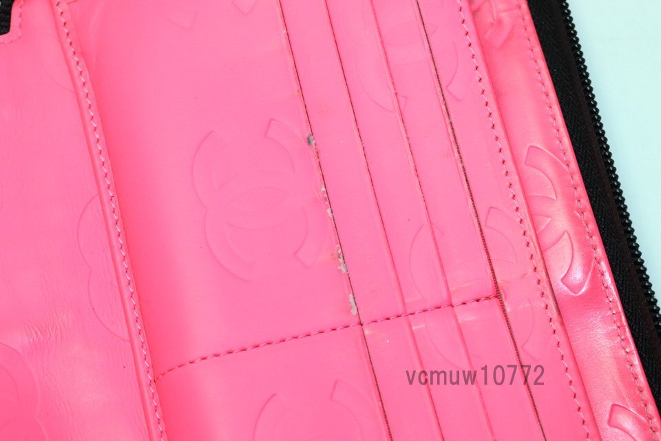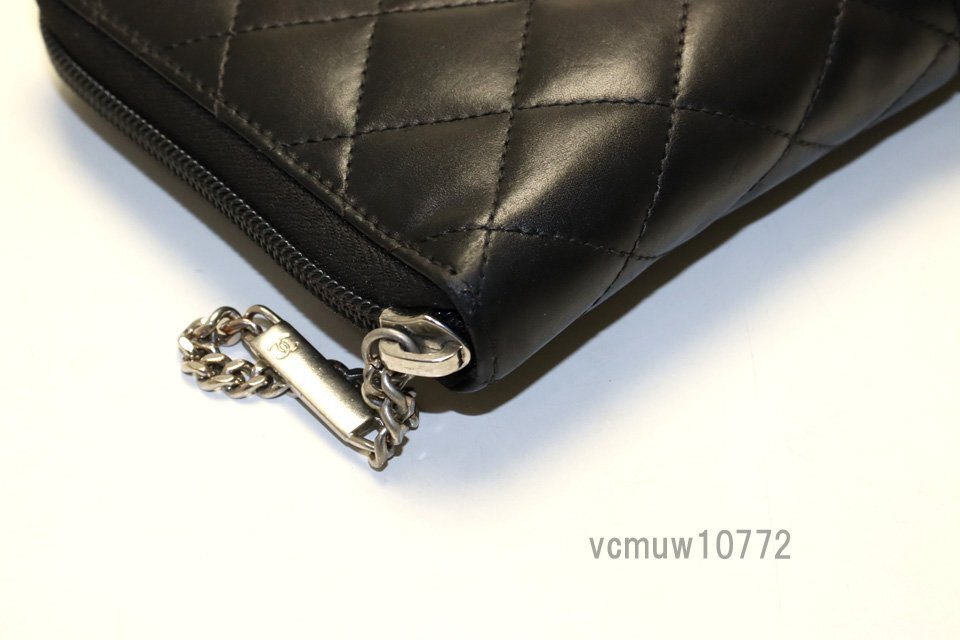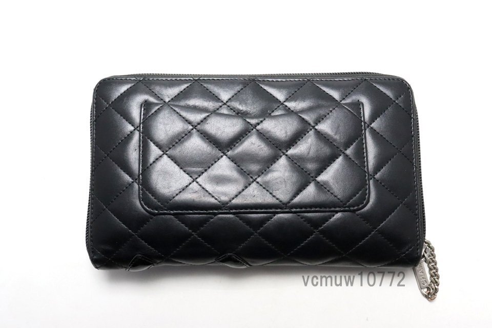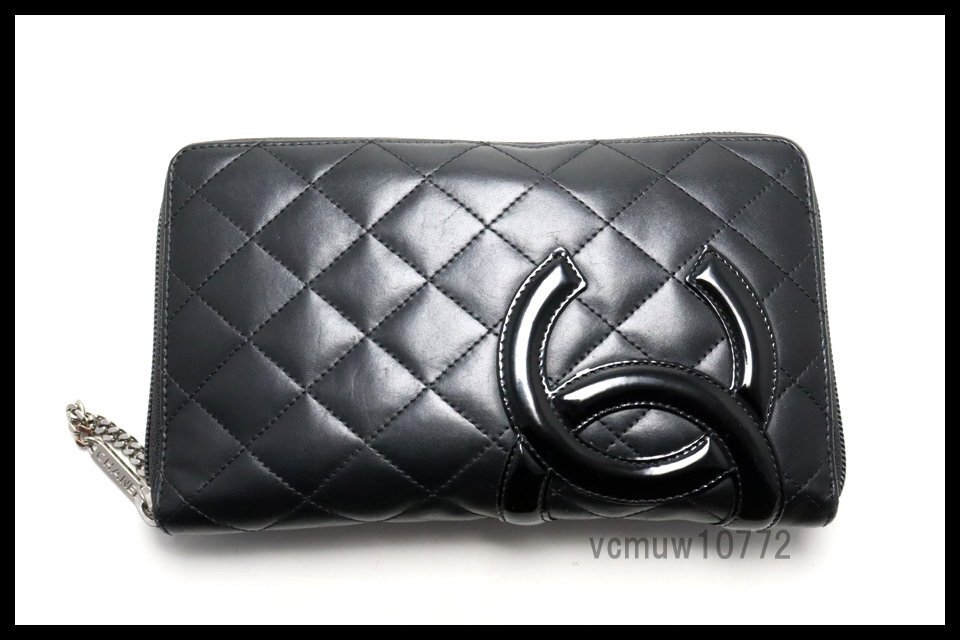希少美中古■CHANEL 19番台 カンボンライン SV金具 レザー ラウンドファスナー 長財布 シャネル■0904om29834
