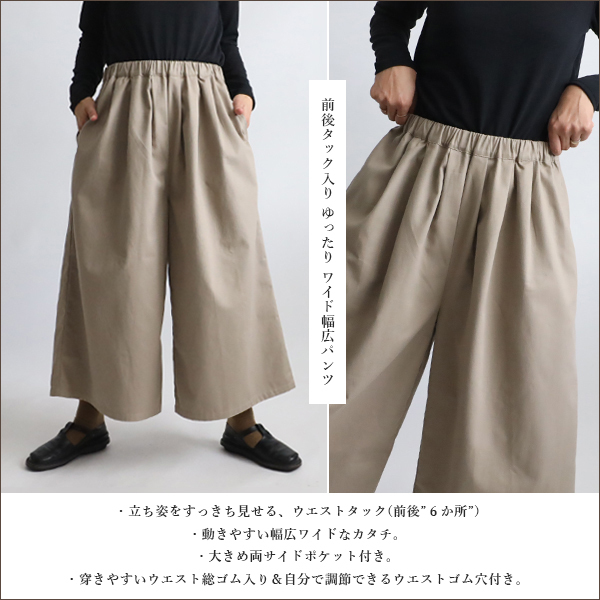 『 前後タック入 ゆったり ワイド幅広パンツ 』